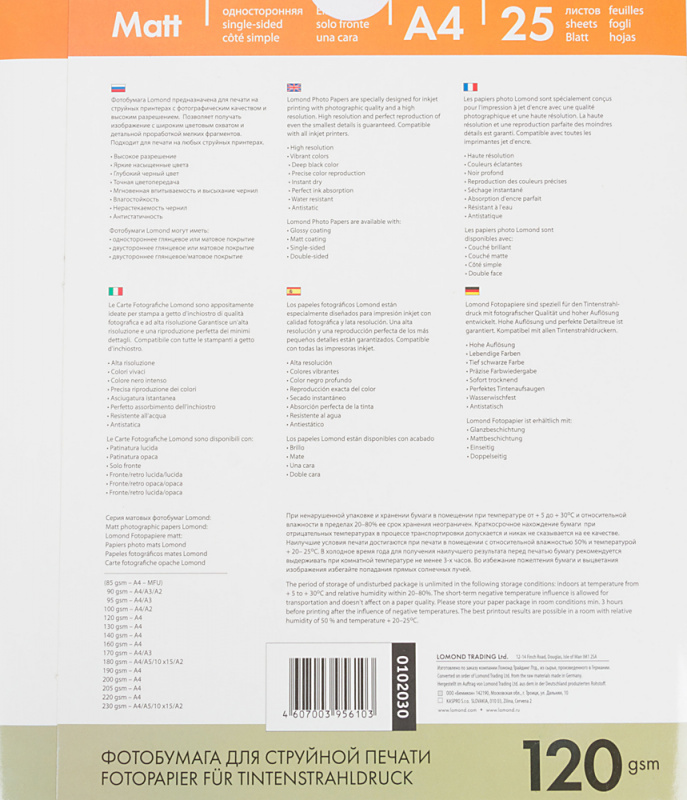 Фотобумага Lomond 0102030 A4/120г/м2/25л./белый матовое для струйной печати