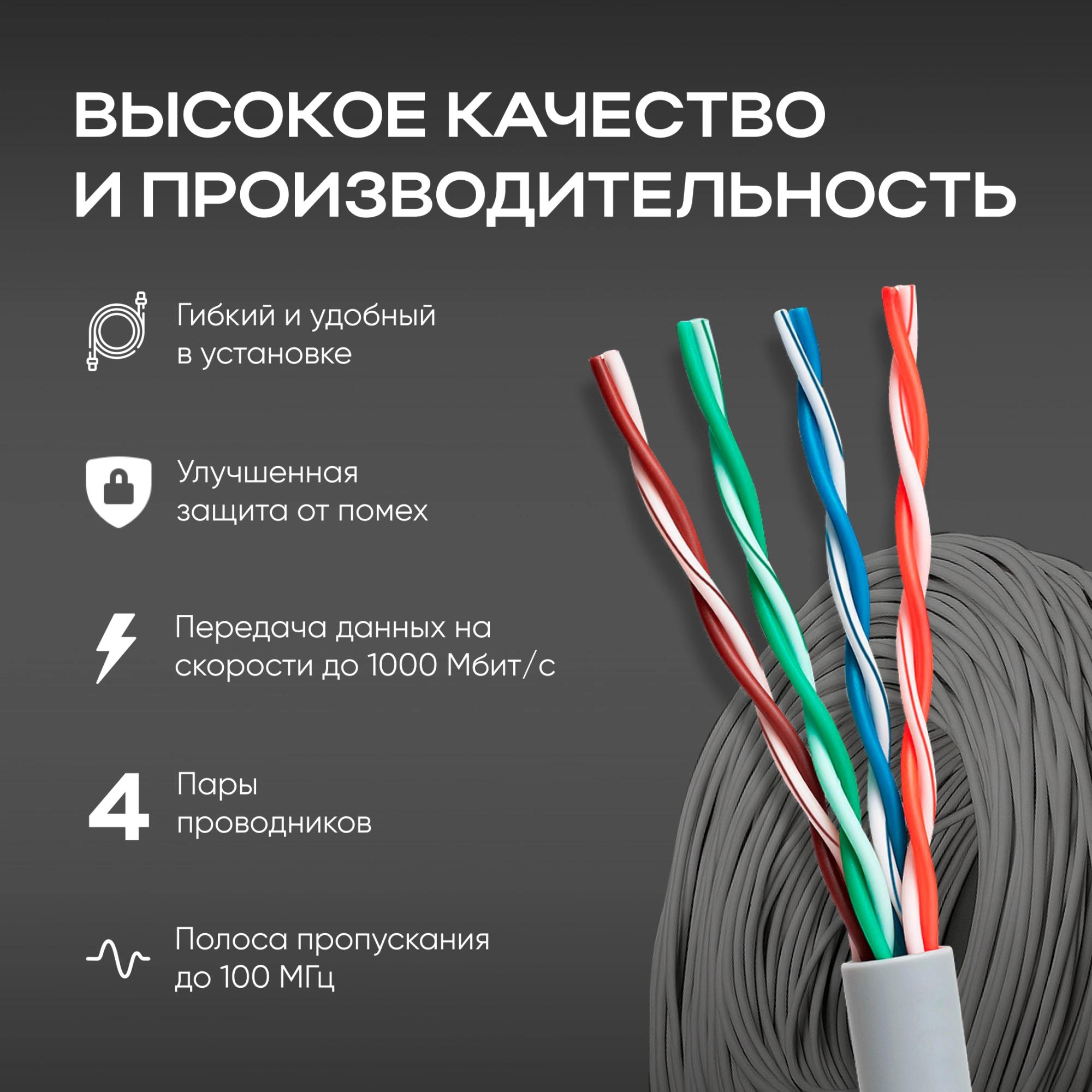 Кабель сетевой HQ UTP 4 пары cat.5E solid 0.42мм Cu 305м серый