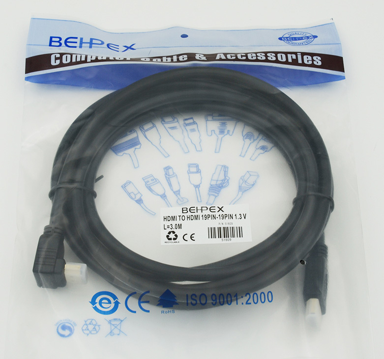 HDMI кабель для подключений компьютеров, ноутбуков Blu-Ray плееров и прочего оборудования к мониторам, телевизорам и проектора. Г-образный разъем упростит подключение и позволит сэкономить место между телевизором и стеной.