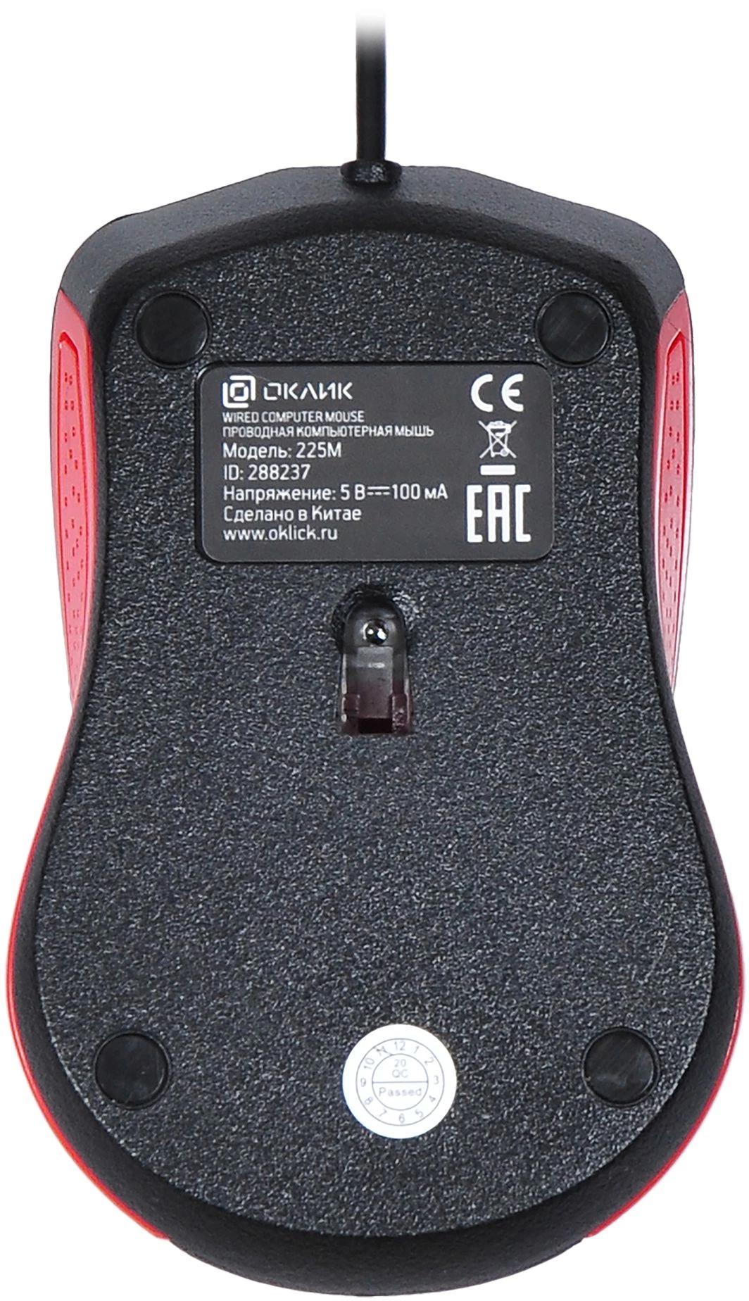 Мышь Оклик 225M черный/красный оптическая (1200dpi) USB для ноутбука (3but)