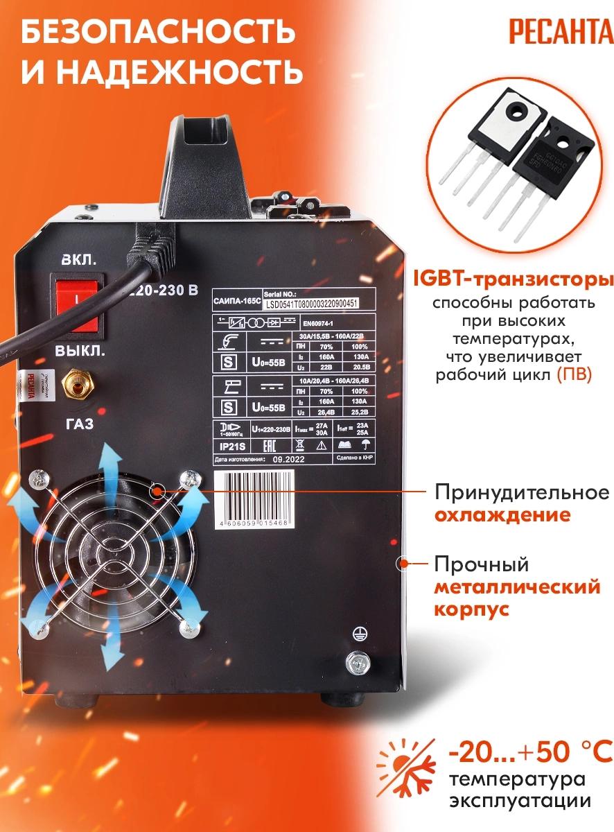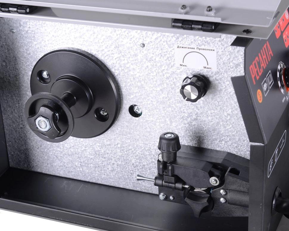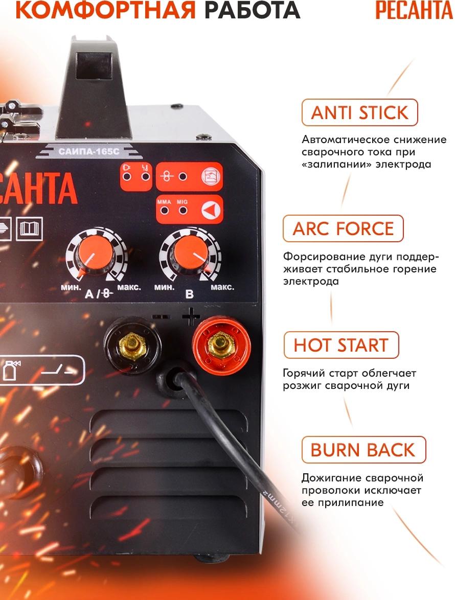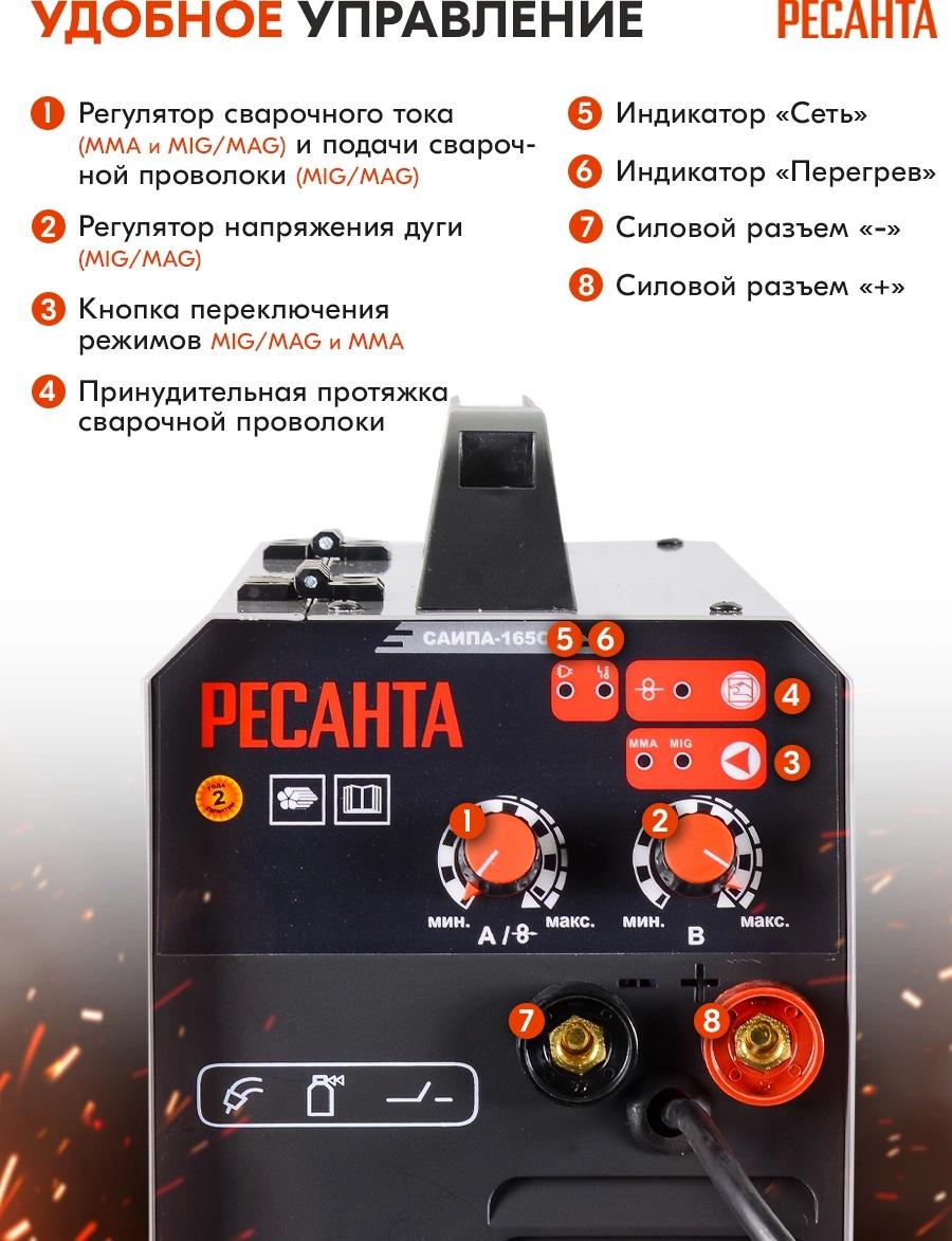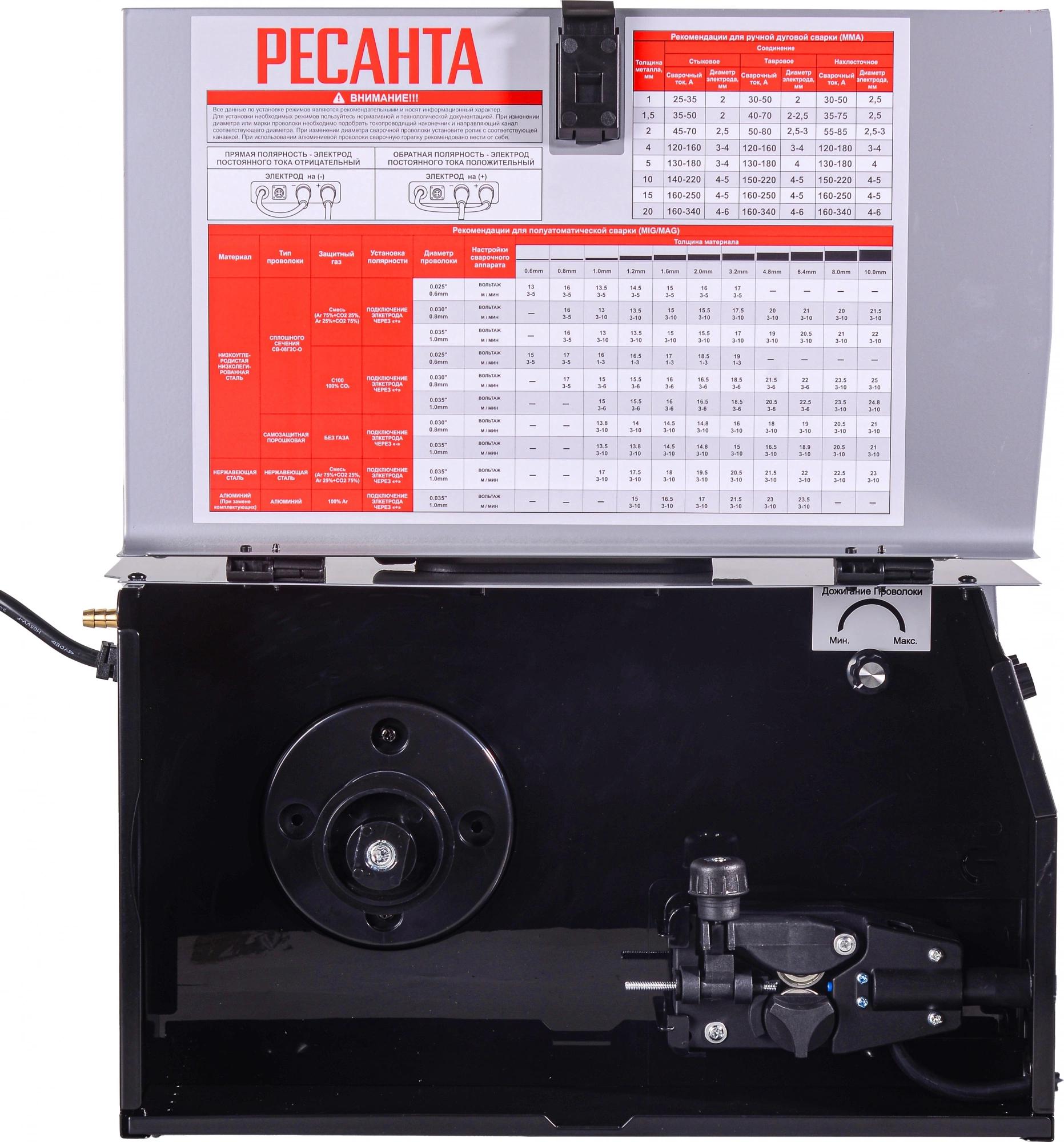 Полуавтоматический инверторный сварочный аппарат Ресанта САИ-165ПА предназначен для сварки специальной проволокой. При нажатии клавиши на ручке проволока подается автоматически, что делает сварной шов равномерным. Регулировка скорости подачи проволоки обуславливает толщину свариваемого шва.