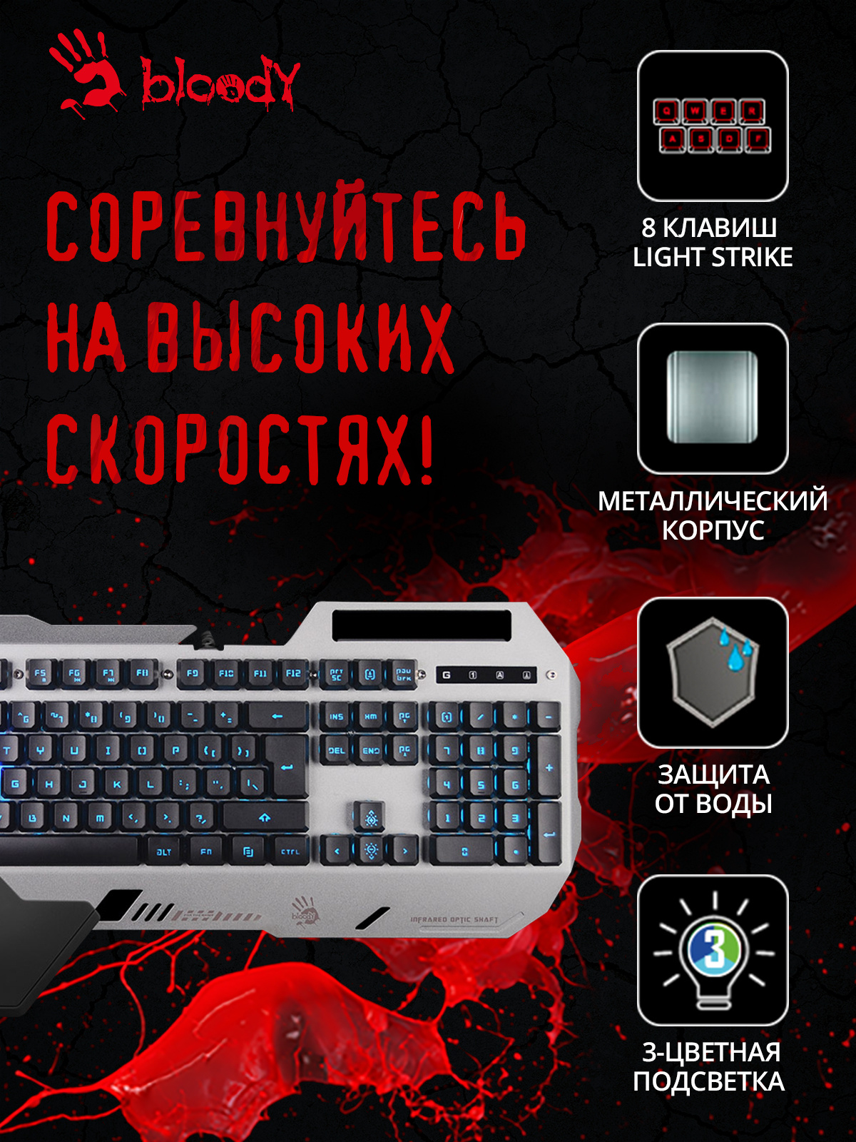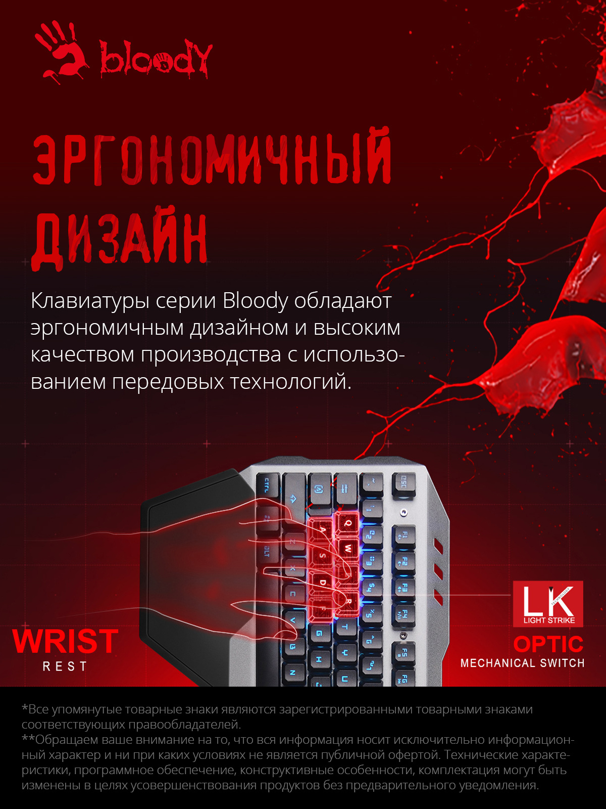 Клавиатура A4Tech Bloody B418 серый USB Multimedia for gamer LED (подставка для ...