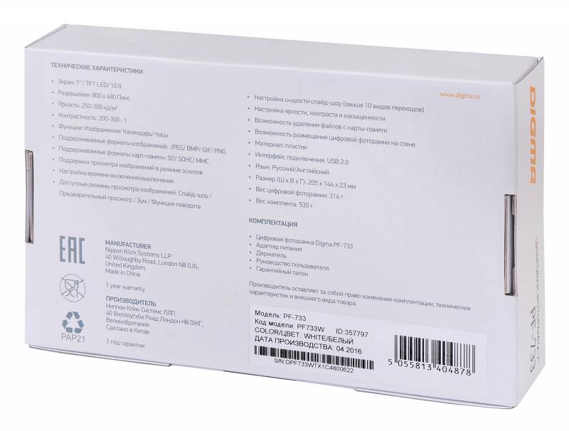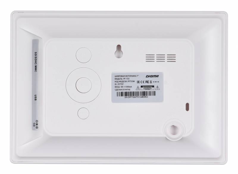 Фоторамка Digma 7" PF-733 800x480 белый пластик