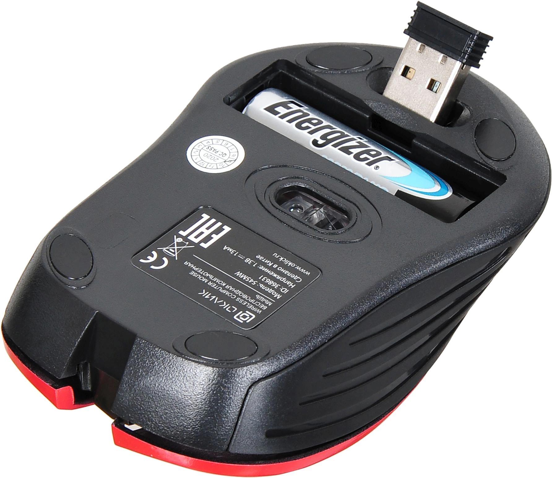 Мышь Оклик 545MW черный/красный оптическая 1600dpi беспров. USB для ноутбука 4but (368631)