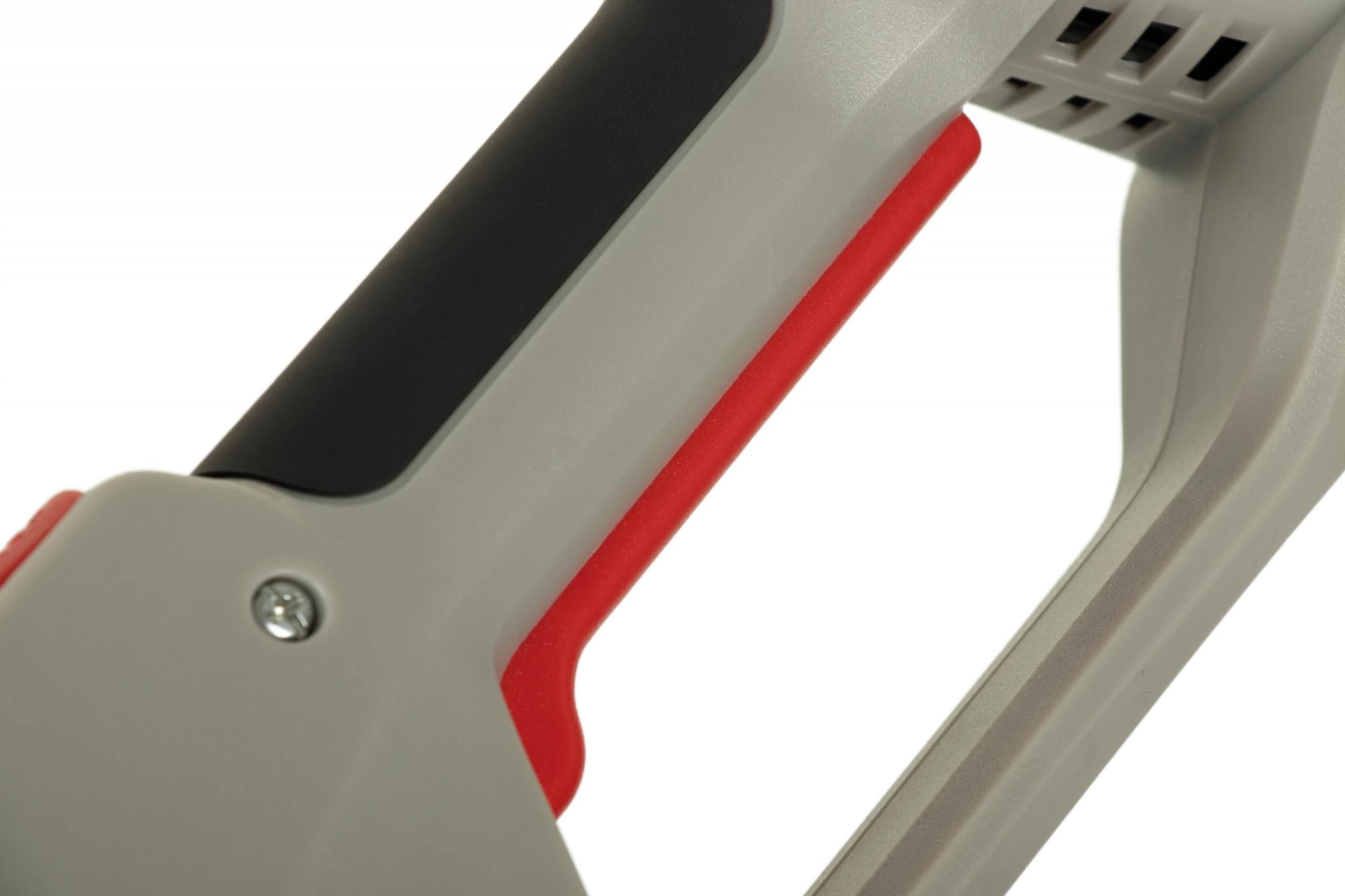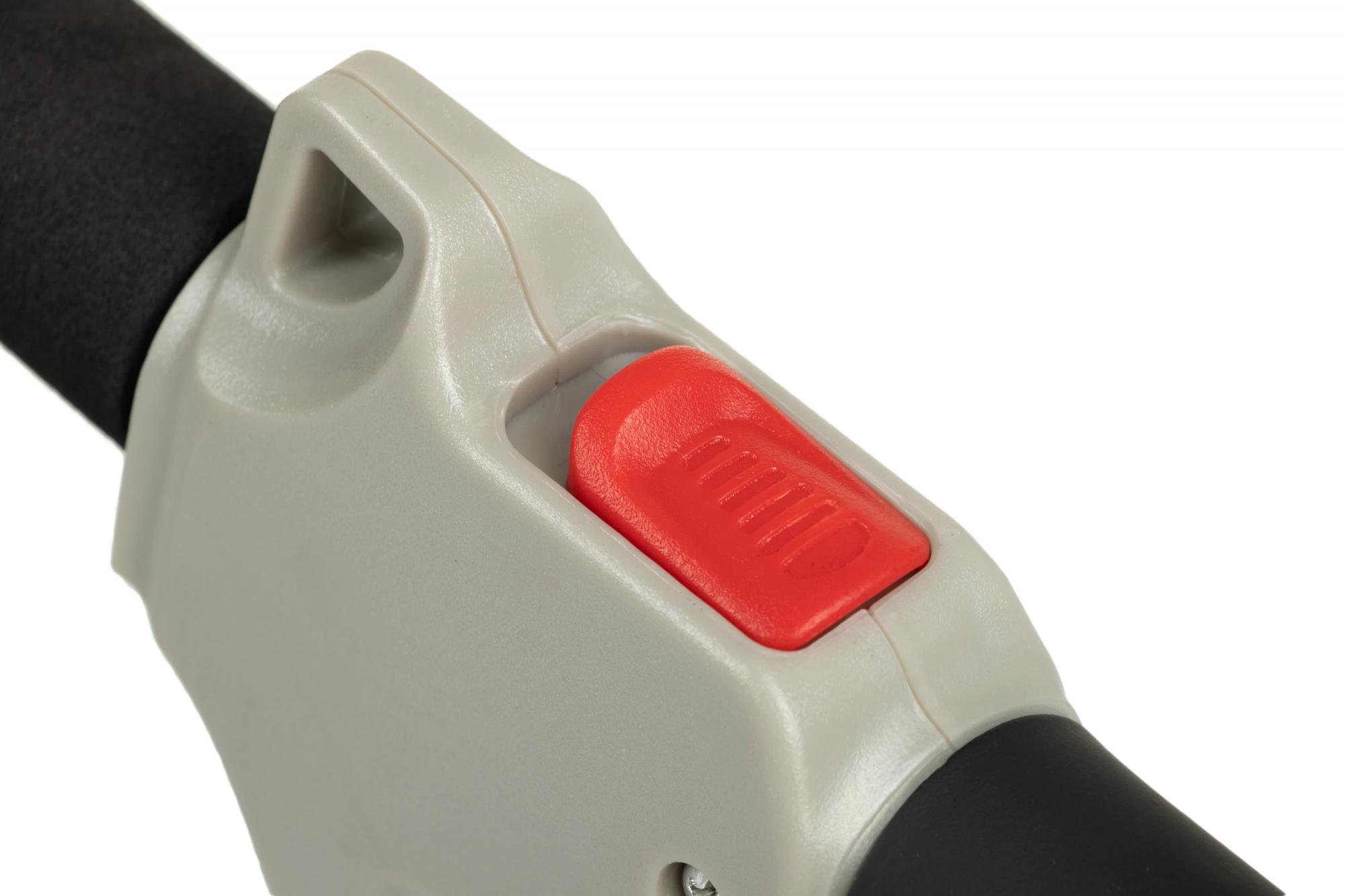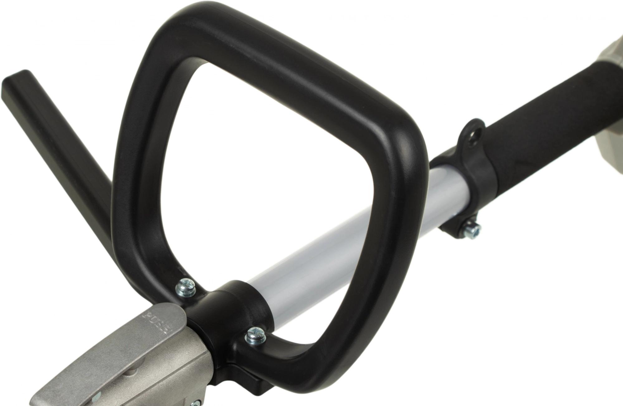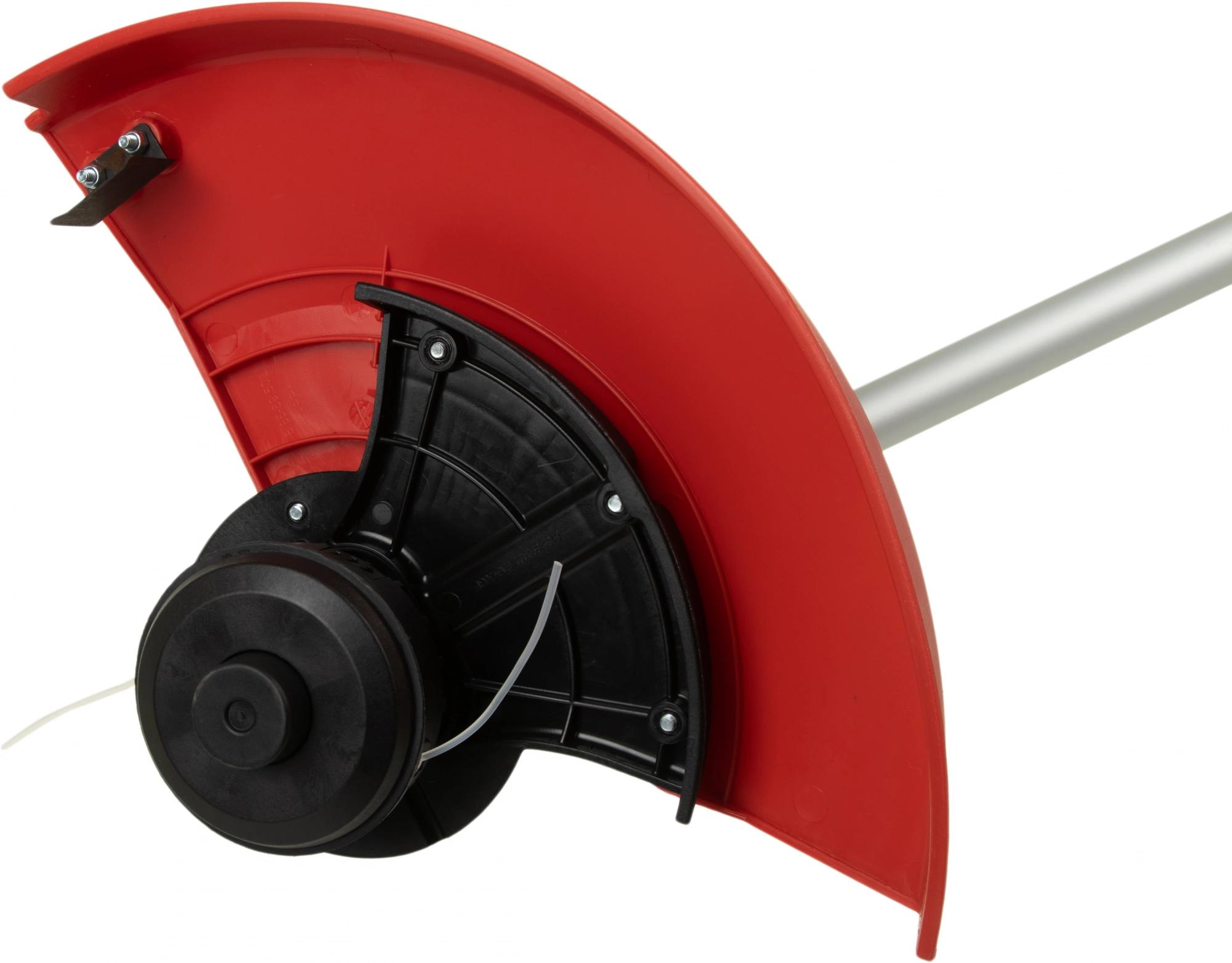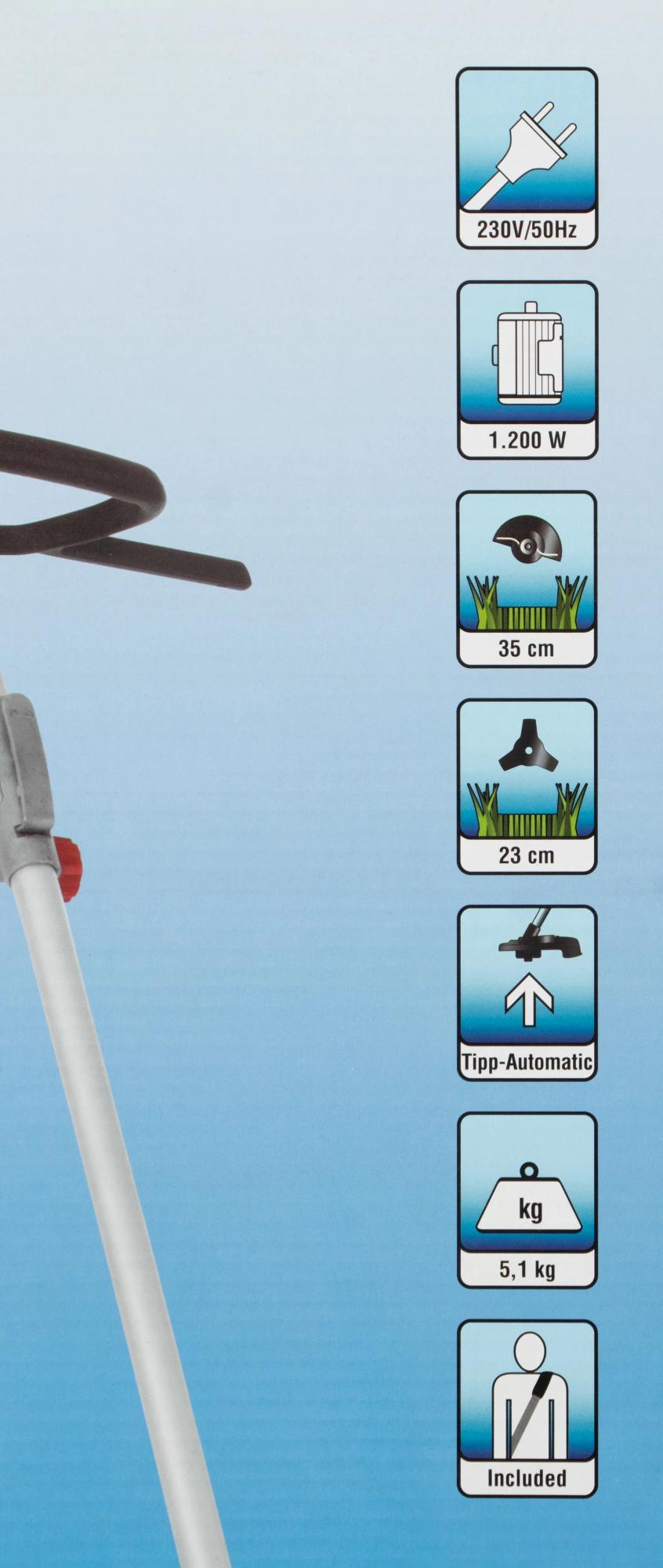 Мощный двигатель – 1200 Вт; Возможность оснащения металлическим ножом или шпулькой с нейлоновой леской; Автоматическая регулировка лески; Ширина прохода 230 мм с ножом и 350 мм с леской; Работает от бытовой электросети 230 В; Дополнительная регулируемая D-образная ручка и плечевой ремень.