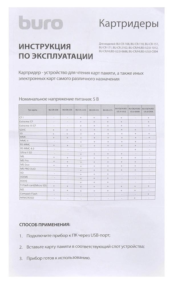 Устройство чтения карт памяти USB2.0 Buro BU-CR-151 черный