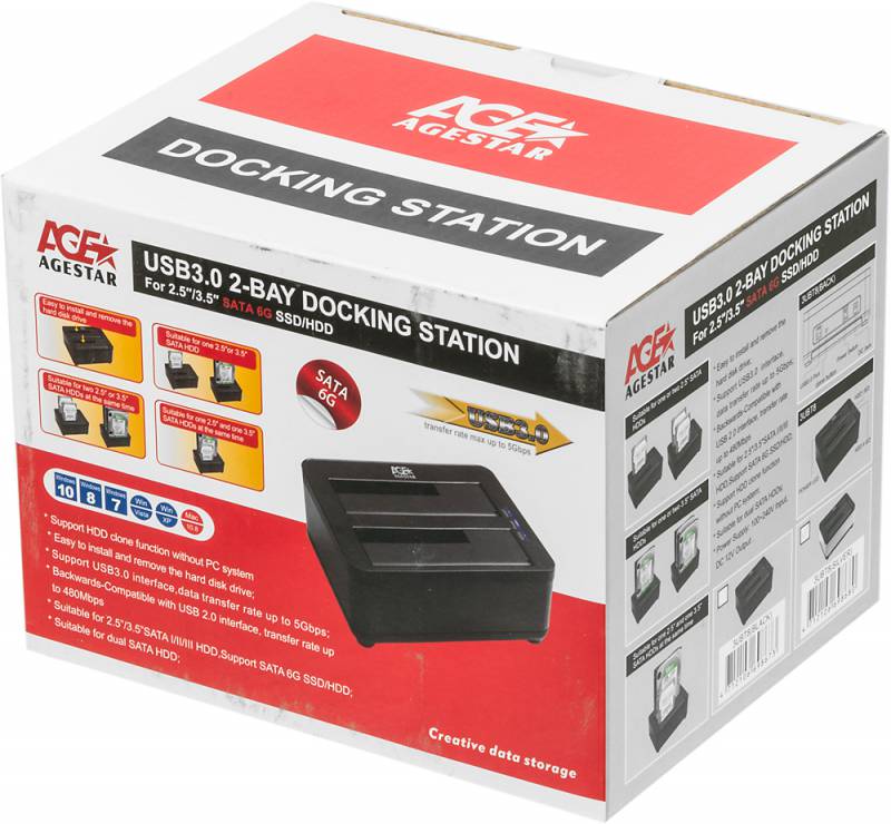 Док-станция для HDD AgeStar 3UBT8 SATA III USB3.0 пластик/алюминий серебристый 2