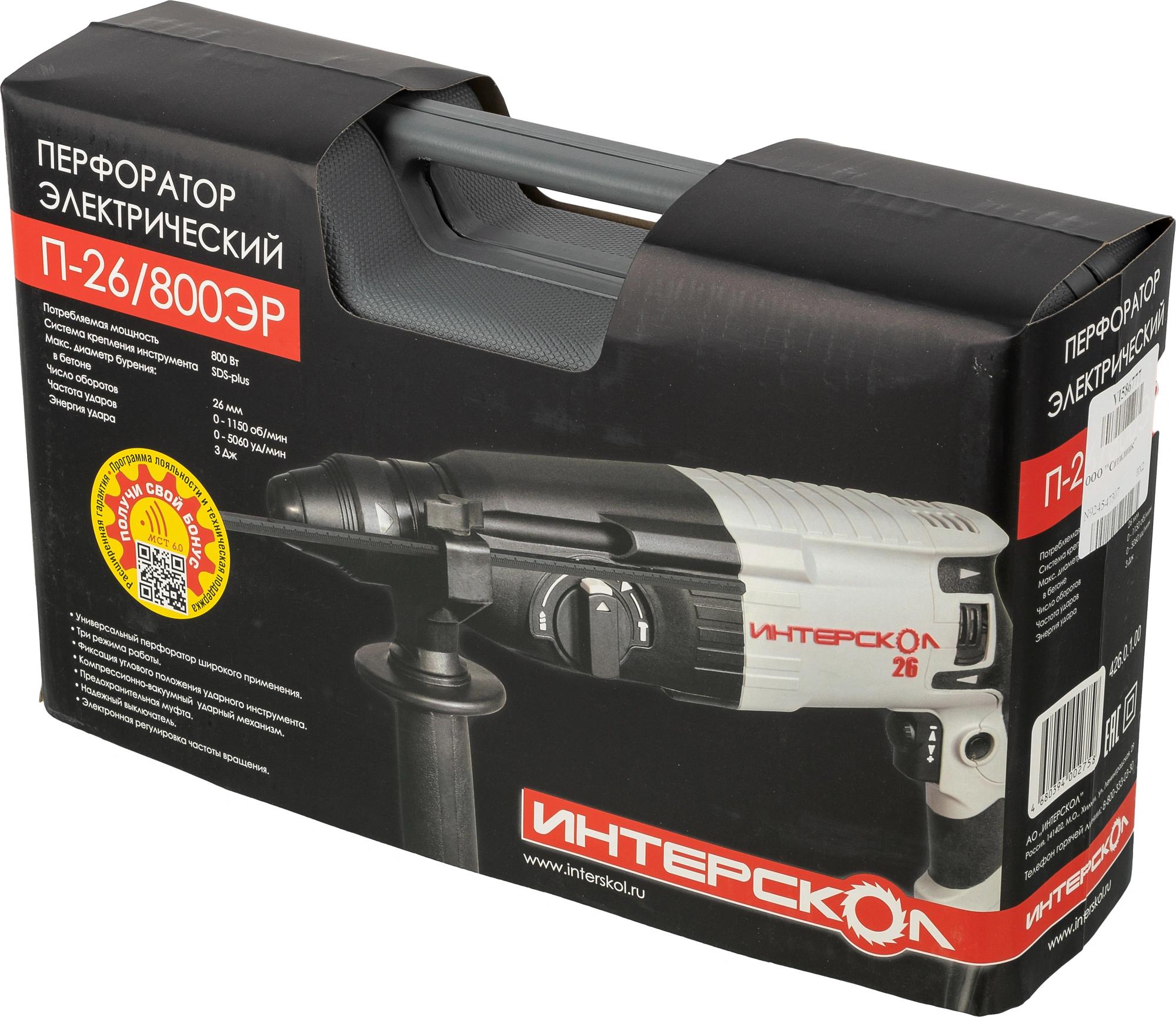 Перфоратор, руководство по эксплуатации и инструкция по безопасности, гарантийный талон, список сервисных центров, рукоятка боковая, ограничитель глубины бурения, упаковка.