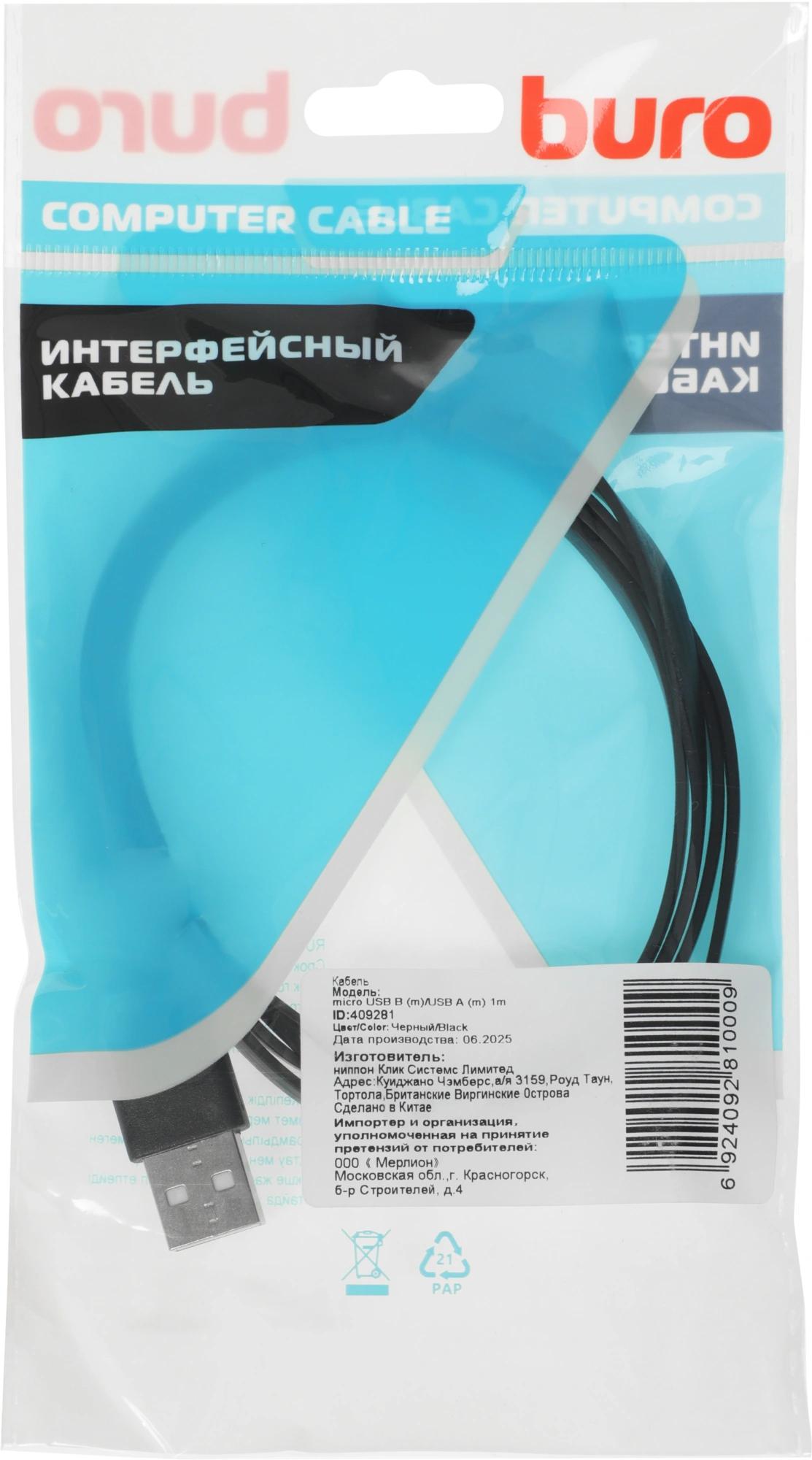 Кабель Buro BHP MICROUSB 1M FLAT USB (m)-micro USB (m) 1м черный плоский