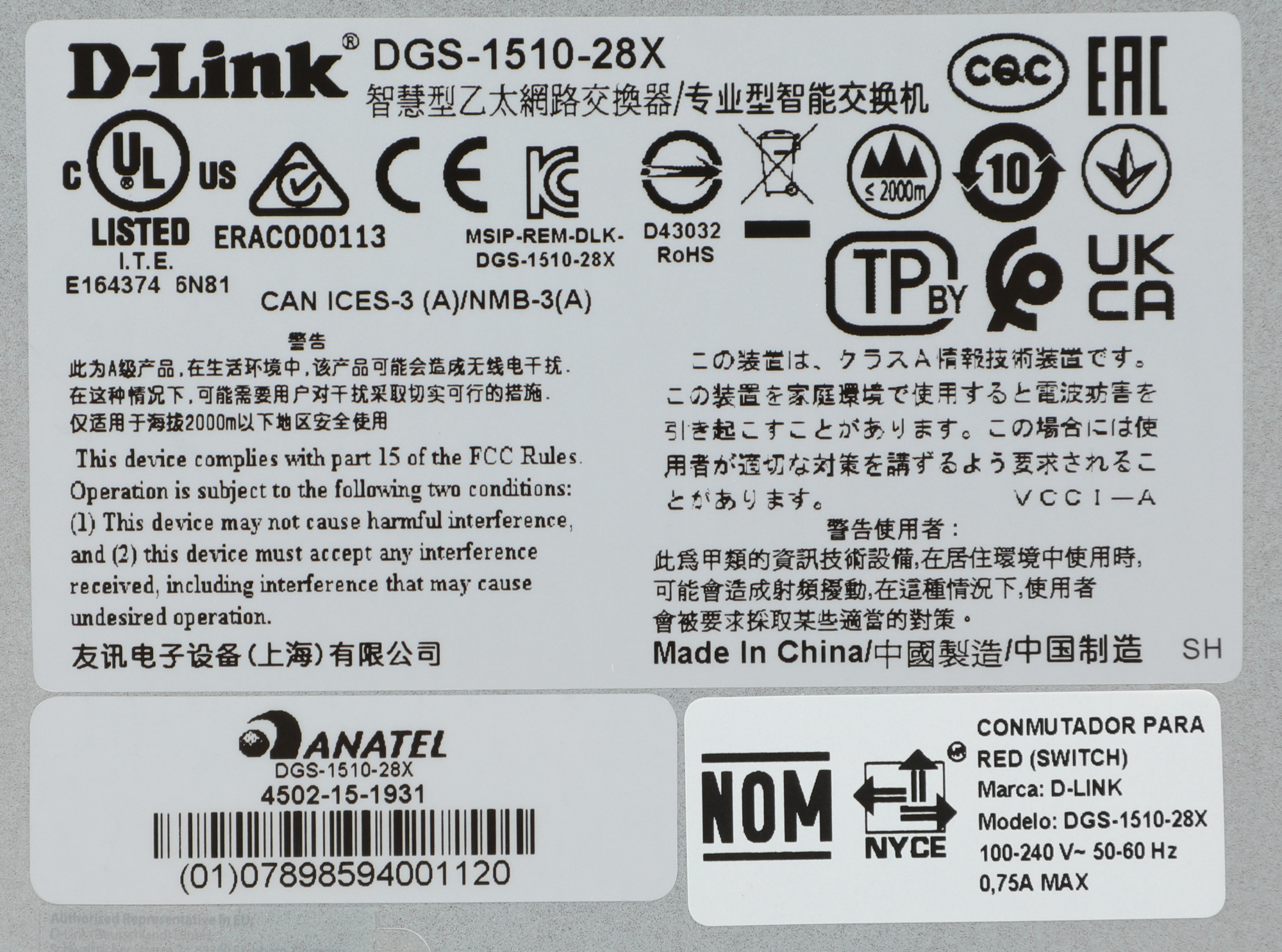 Коммутатор D-Link DGS-1510-28X/A1A 24x1Гбит/с 4SFP+ управляемый