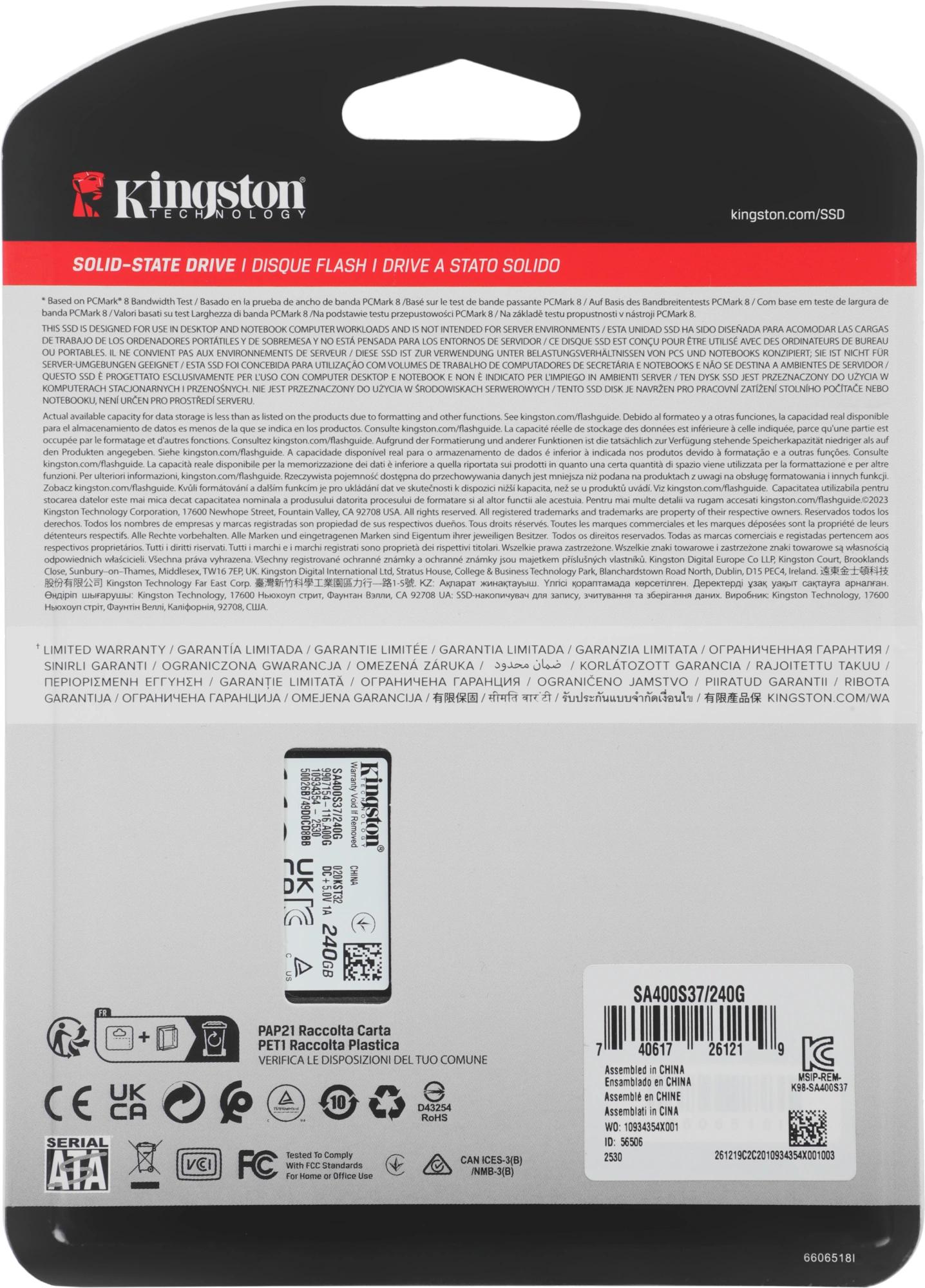 Накопитель SSD Kingston SATA-III 240GB SA400S37/240G A400 2.5"