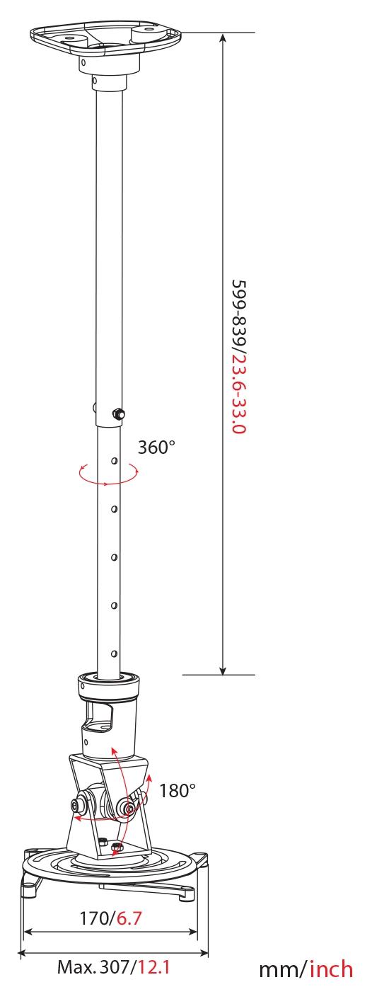 Инструменты в комплекте; Возможность быстрого снятия; Установочные отверстия: 8-30.7 см. Выдвижная штанга сделана из стали, остальные части корнштейна из алюминия.