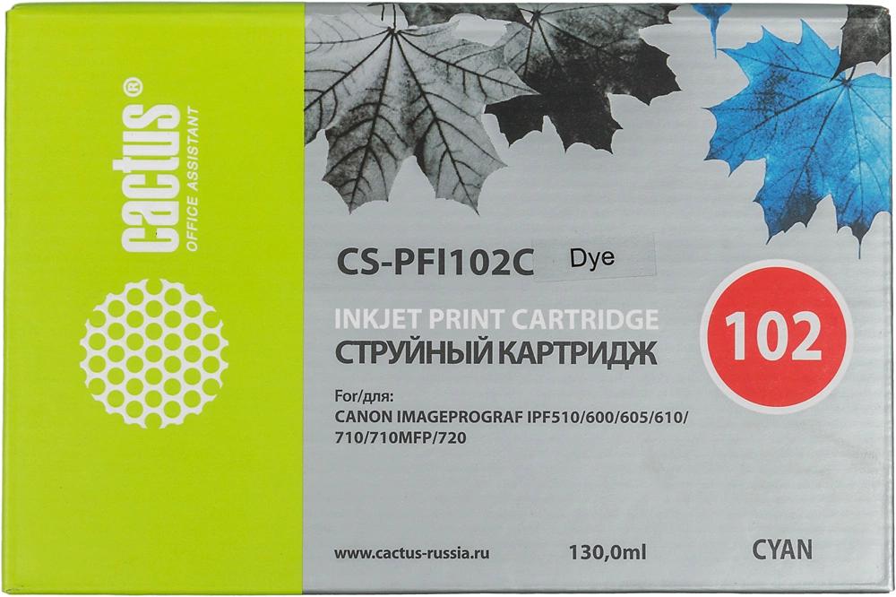 Картридж струйный Cactus CS-PFI102C PFI-102 C синий (130мл) для Canon IP iPF500/iPF600/iPF700/ MFP M40/iPF765/LP17/LP24 с чипом