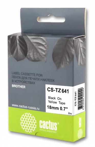 Картридж ленточный Cactus CS-TZ641 TZe-641 черный на желтом 18x8 для Brother 1010/1280/1280VP/2700VP