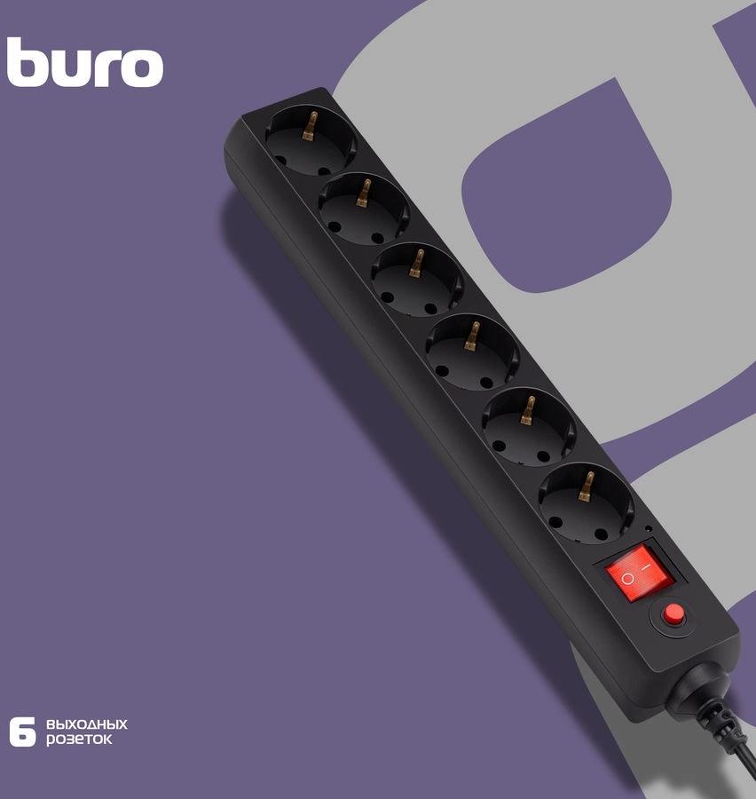 Сетевой фильтр Buro 600SH-16-3-B 3м (6 розеток) черный (коробка)