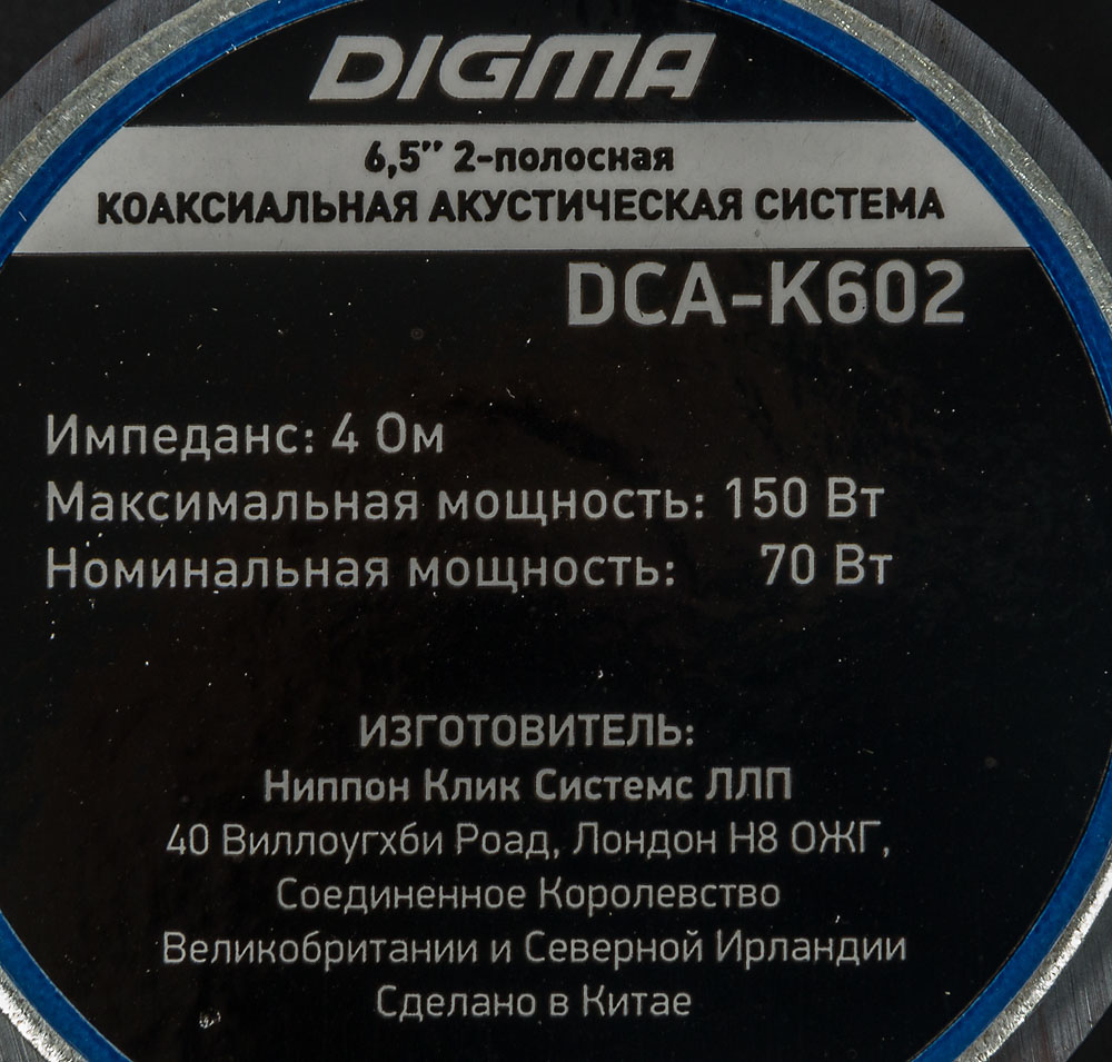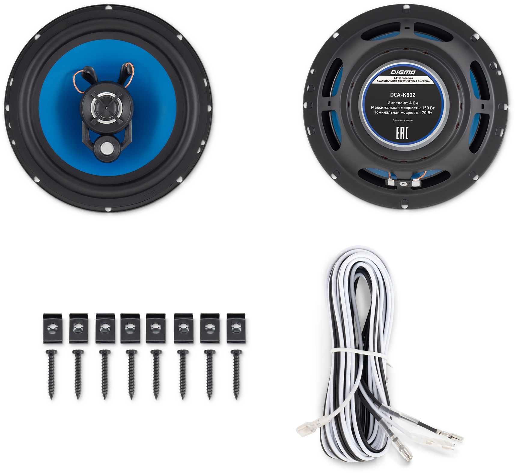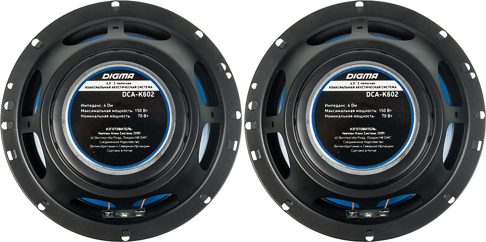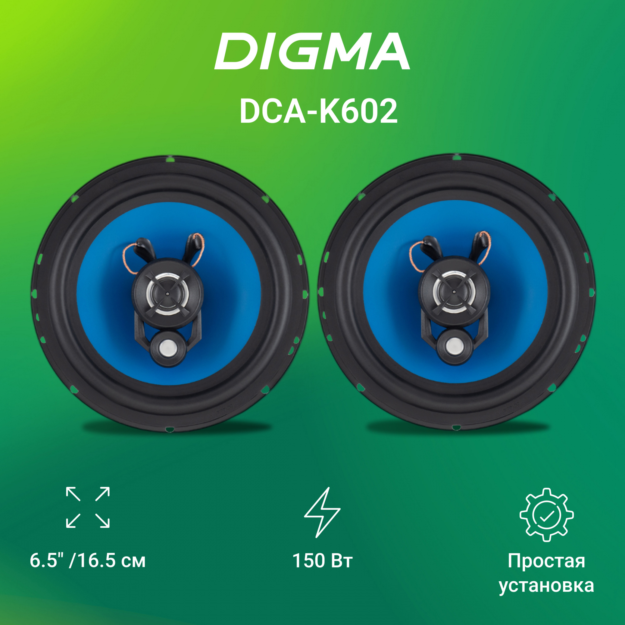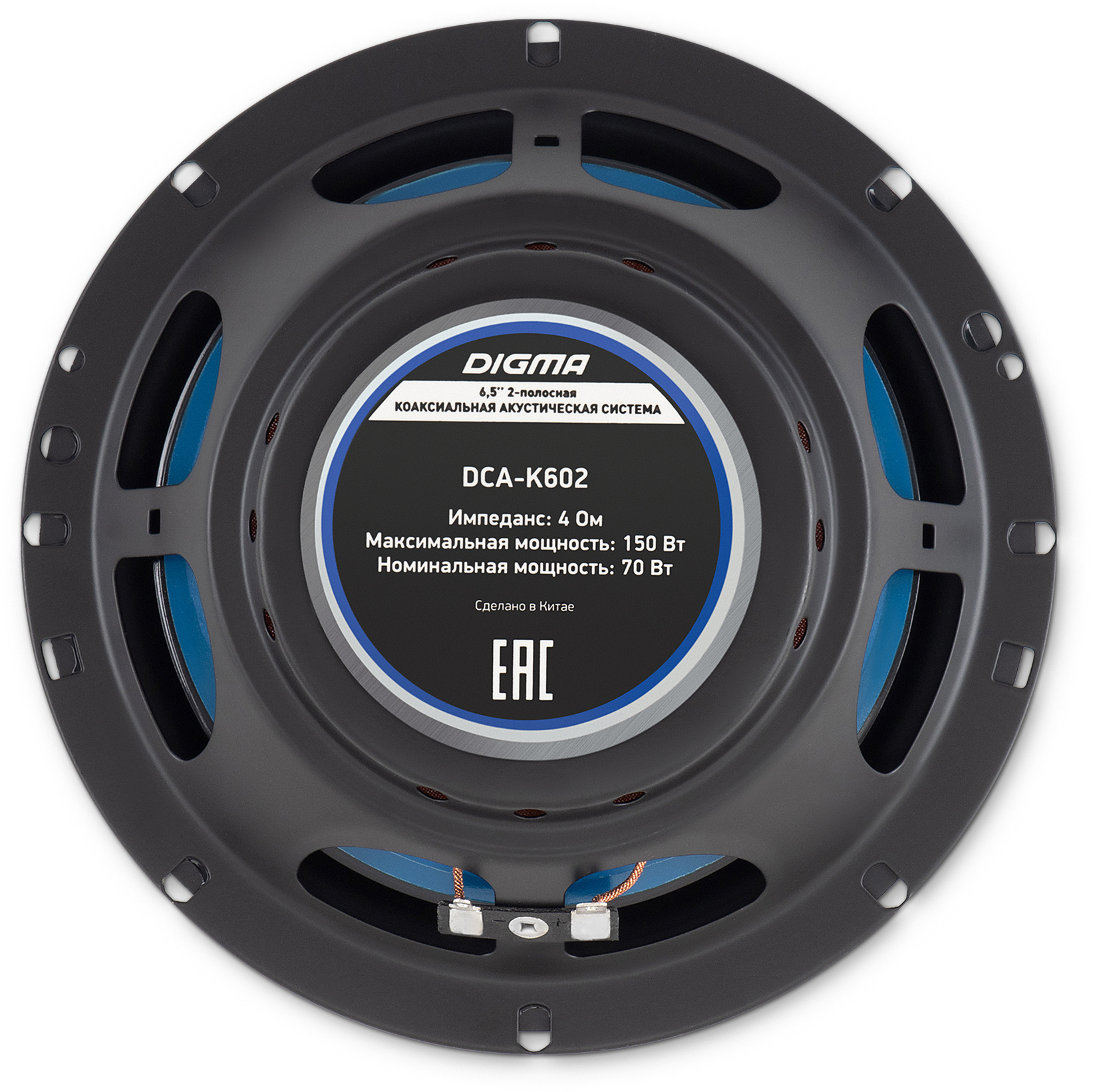 Колонки автомобильные Digma DCA-K602 (без решетки) 150Вт 90дБ 4Ом 16.5см (6 1/2дюйм) (ком.:2кол.) коаксиальные двухполосные