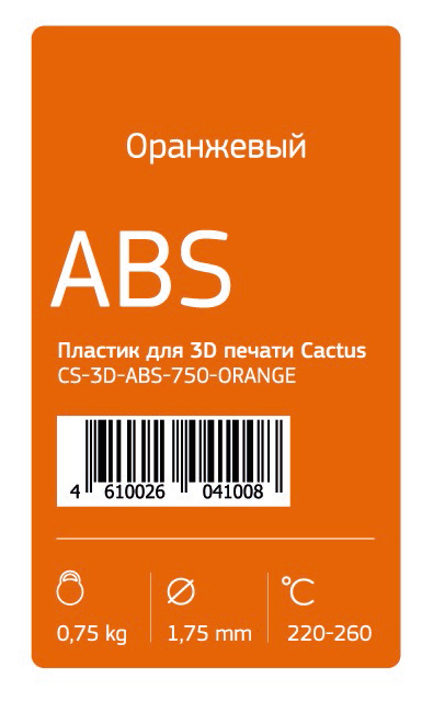 Пластик для принтера 3D Cactus CS-3D-ABS-750-ORANGE ABS d1.75мм 0.75кг 1цв.