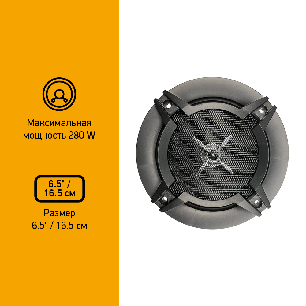 Колонки автомобильные Digma DCA-T602 280Вт 86дБ 4Ом 16.5см (6 1/2дюйм) (ком.:2кол.) коаксиальные двухполосные