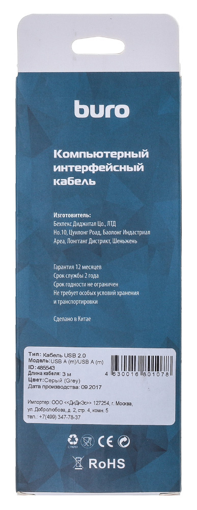 Кабель Buro USB A(m) USB A(m) 3м (BHP RET USB_AM30) серый (блистер)