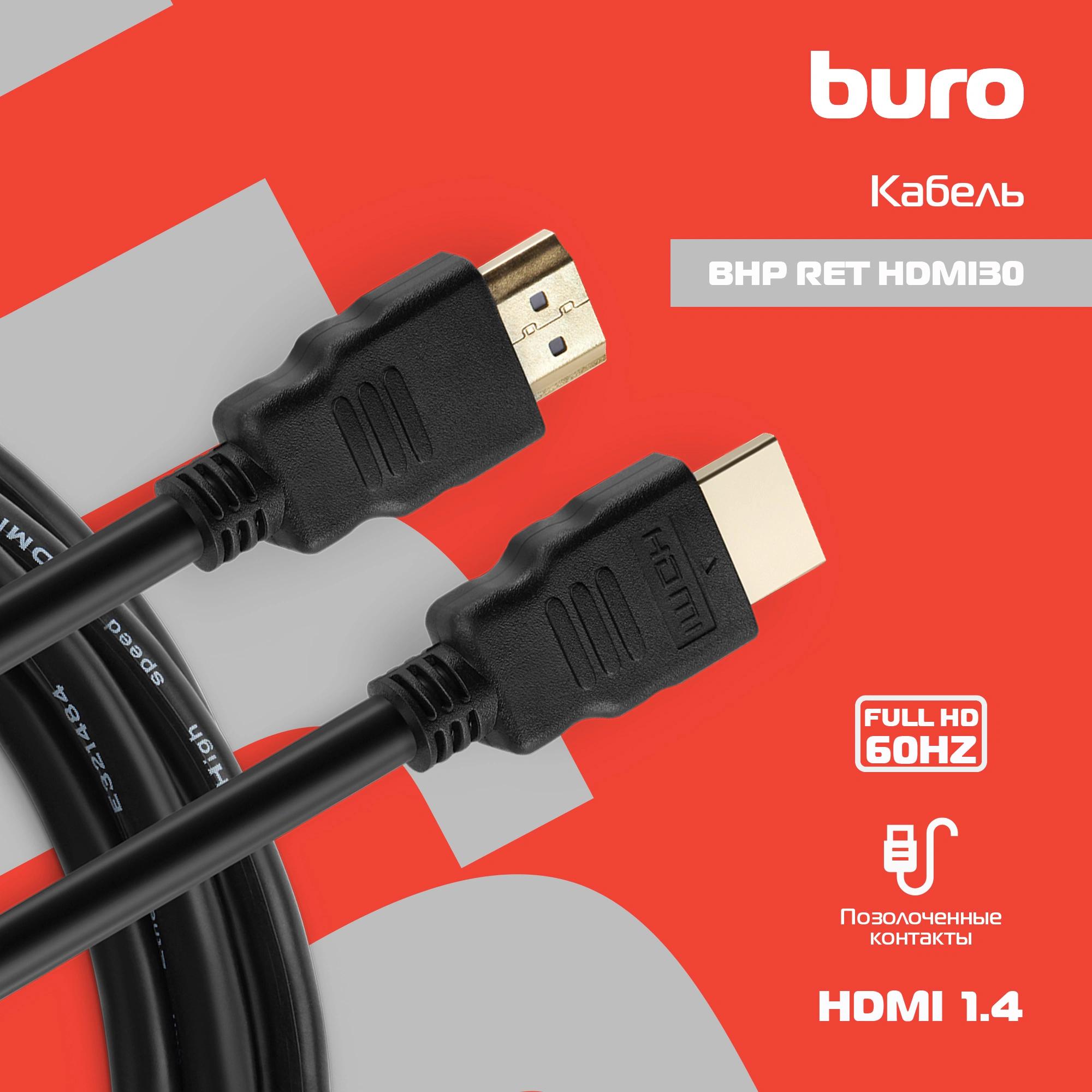 Кабель аудио-видео Buro HDMI 1.4 HDMI (m)/HDMI (m) 3м. позолоч.конт. черный (BHP RET HDMI30)