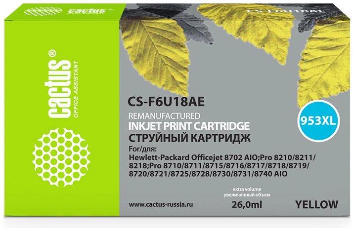 Картридж струйный Cactus CS-F6U18AE 953XL желтый (26мл) для HP OJ Pro 7740/8210/8218/8710/8715 с чипом