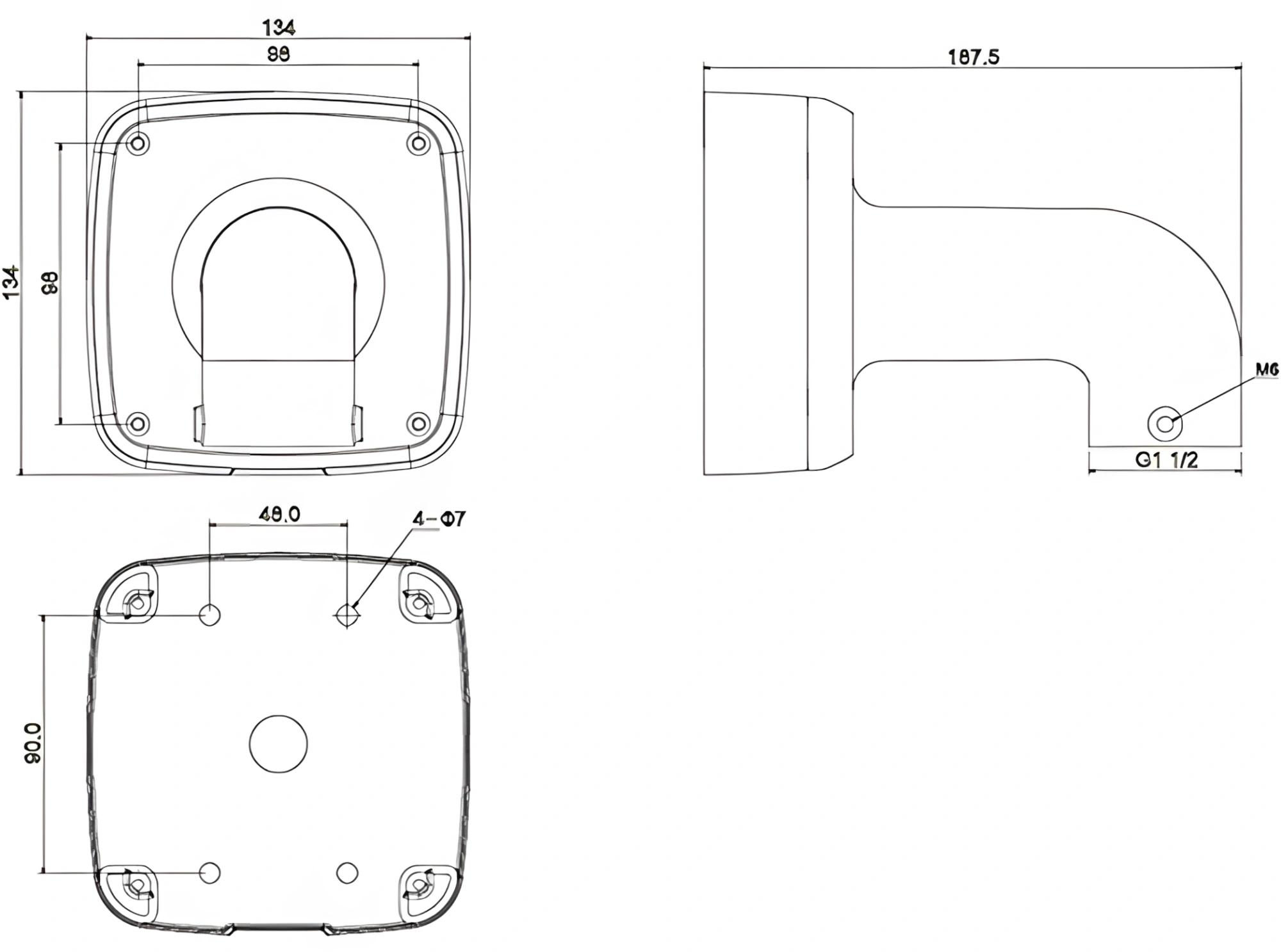 Настенный кронштейн с распределительной коробкой IP66 для установки купольных видеокамер.