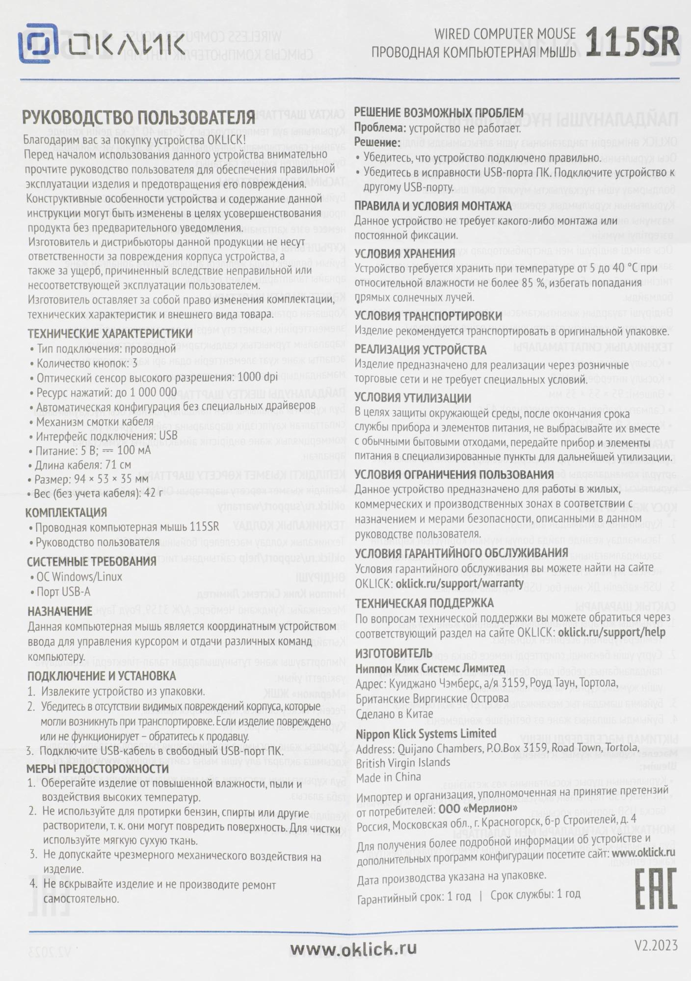 Мышь Оклик 115SR черный оптическая 1000dpi USB для ноутбука 3but (492888)