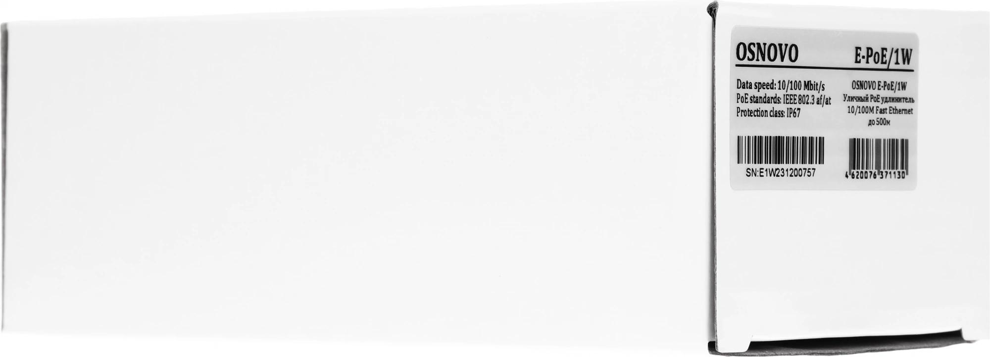 При каскадном подключении - 2 x E-Poe/1: до 300м (до 12W), 3 x E-Poe/1: до 400м (до 6W), 4 x E-Poe/1: до 500м (До 4W). Соответствует стандартам PoE IEEE 802.3af/at. Автоматическое определение PoE устройств. Порты: вх.- FE (10/100 Base-T), вых.- FE (10/100 Base-T). Не требует дополнительного питания.