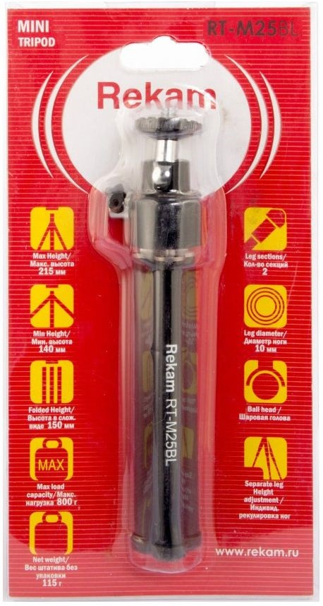 Миниатюрный штатив с раздвижными двухсекционными ножками, отлично подходит для съемки со стола или любой другой подходящей поверхности. Камера надежно фиксируется в подходящем положении с помощью специального поворотного зажима.