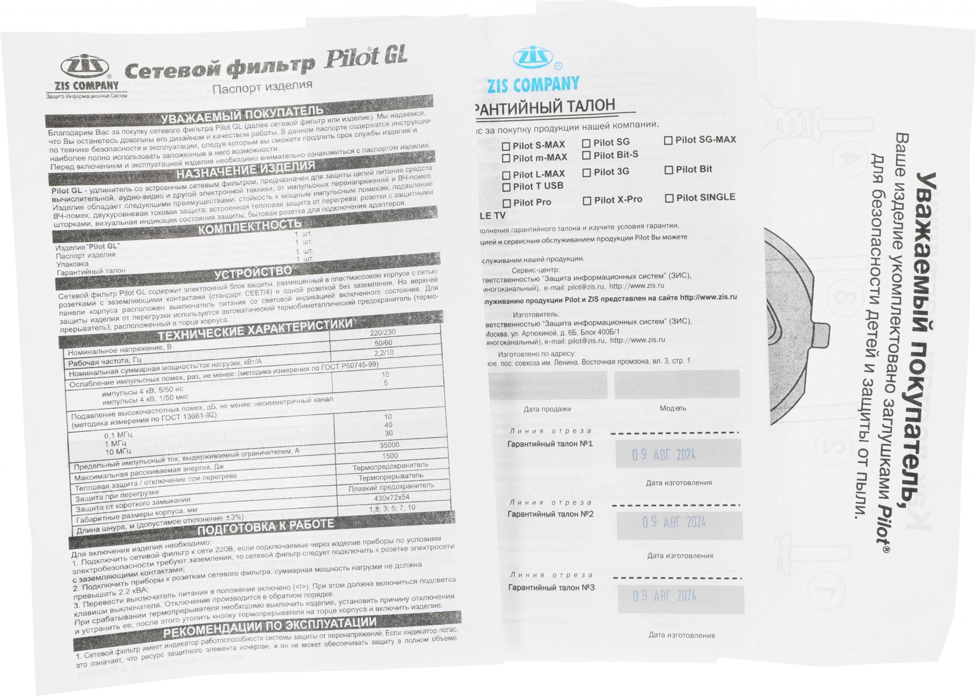 Сетевой фильтр Pilot GL 5м (6 розеток) белый (коробка)