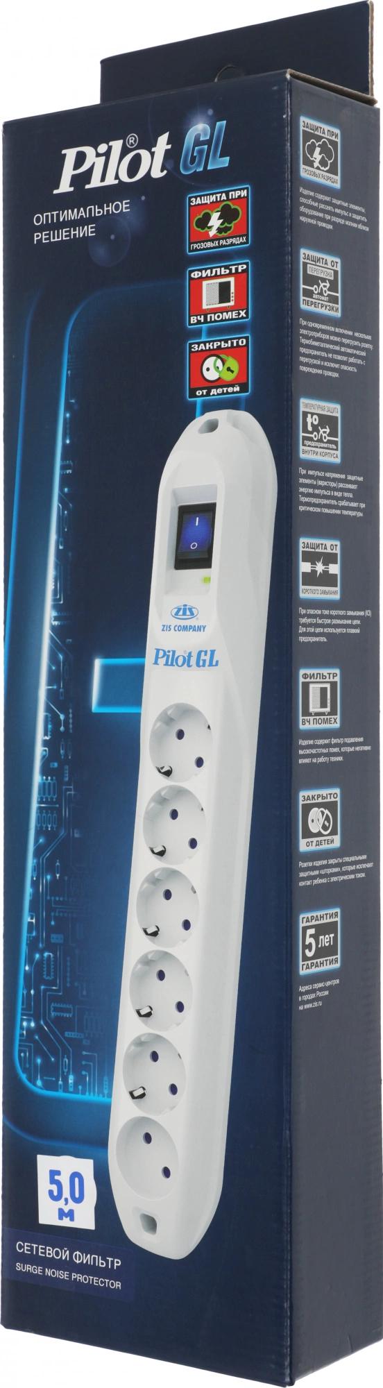 Сетевой фильтр Pilot GL 5м (6 розеток) белый (коробка)