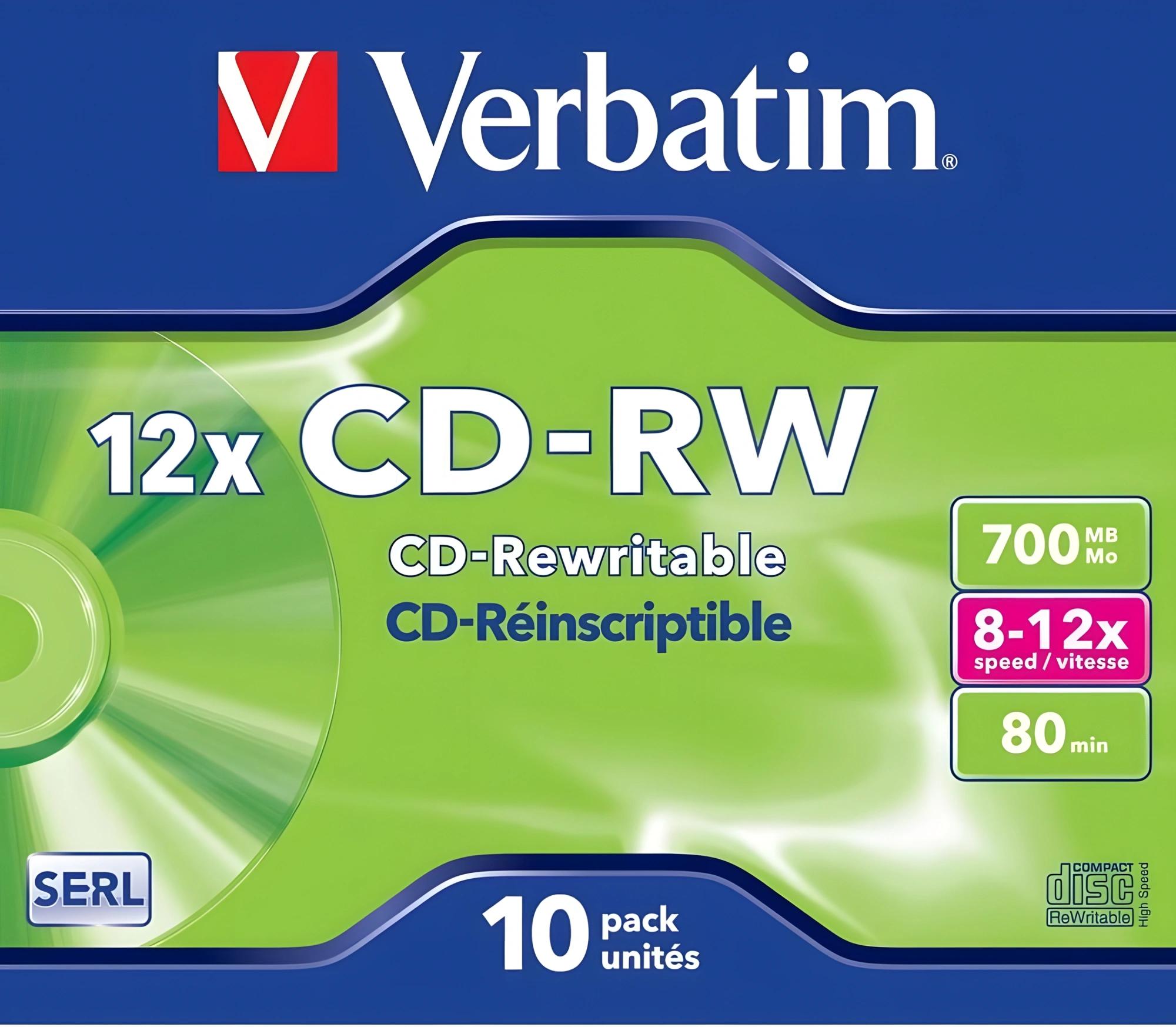 Диск CD-RW Verbatim 700Mb 12x Jewel case (10шт) (43148)