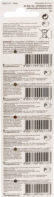 Комплект из 5-и батарей CR2016 используемых в калькуляторах, часах и прочей электронике. Батареи серии Lithium отличает высочайшее качество, способность работать в диапазоне температур от -10°C до 60°C и долгий срок службы.