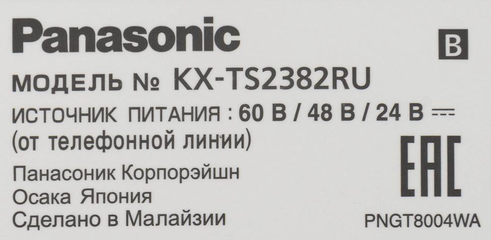 Телефон проводной Panasonic KX-TS2382RUB черный