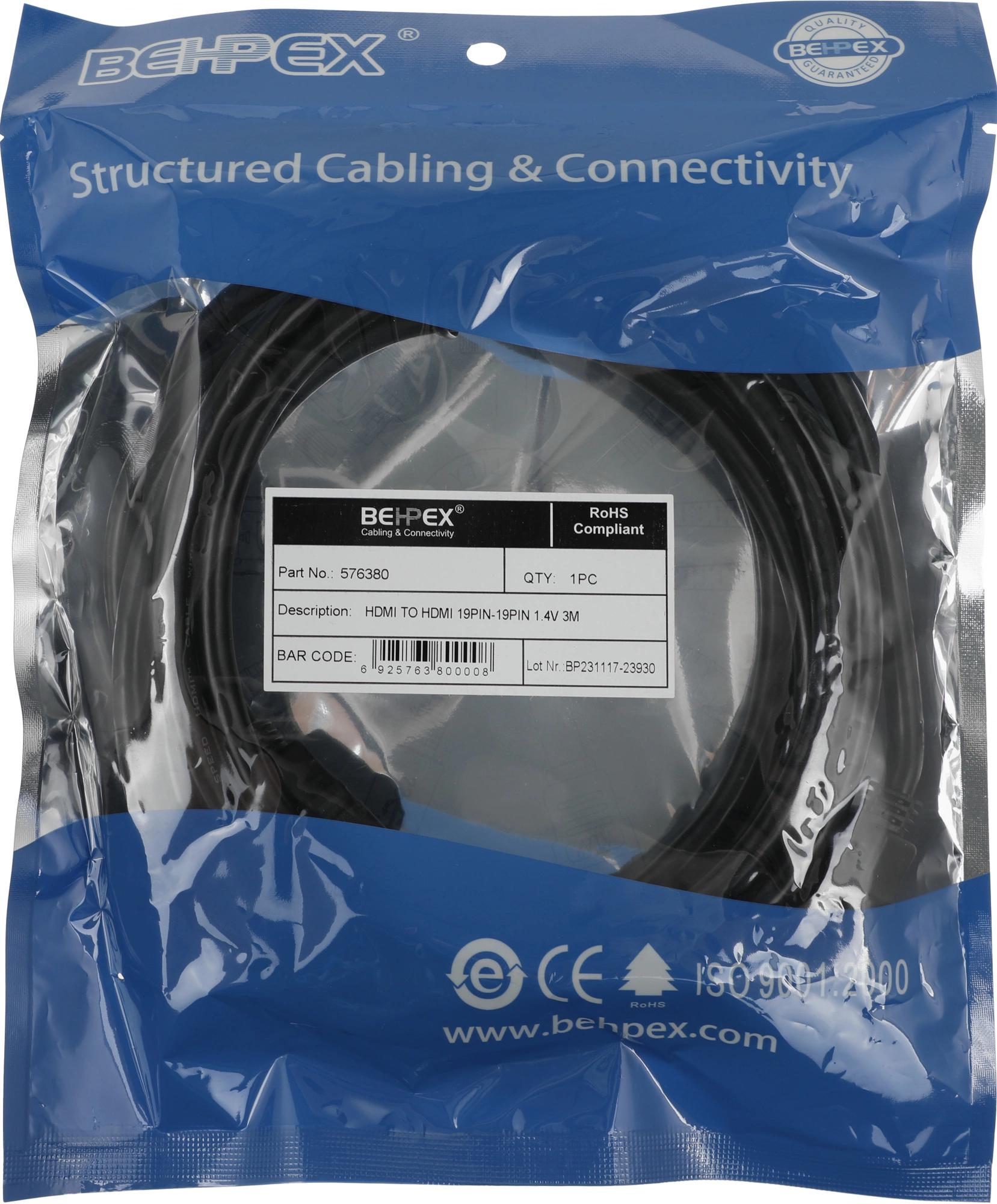 HDMI кабель для подключений компьютеров, ноутбуков Blu-Ray плееров и прочего оборудования к мониторам, телевизорам и проектора. Длина кабеля 3 метра.