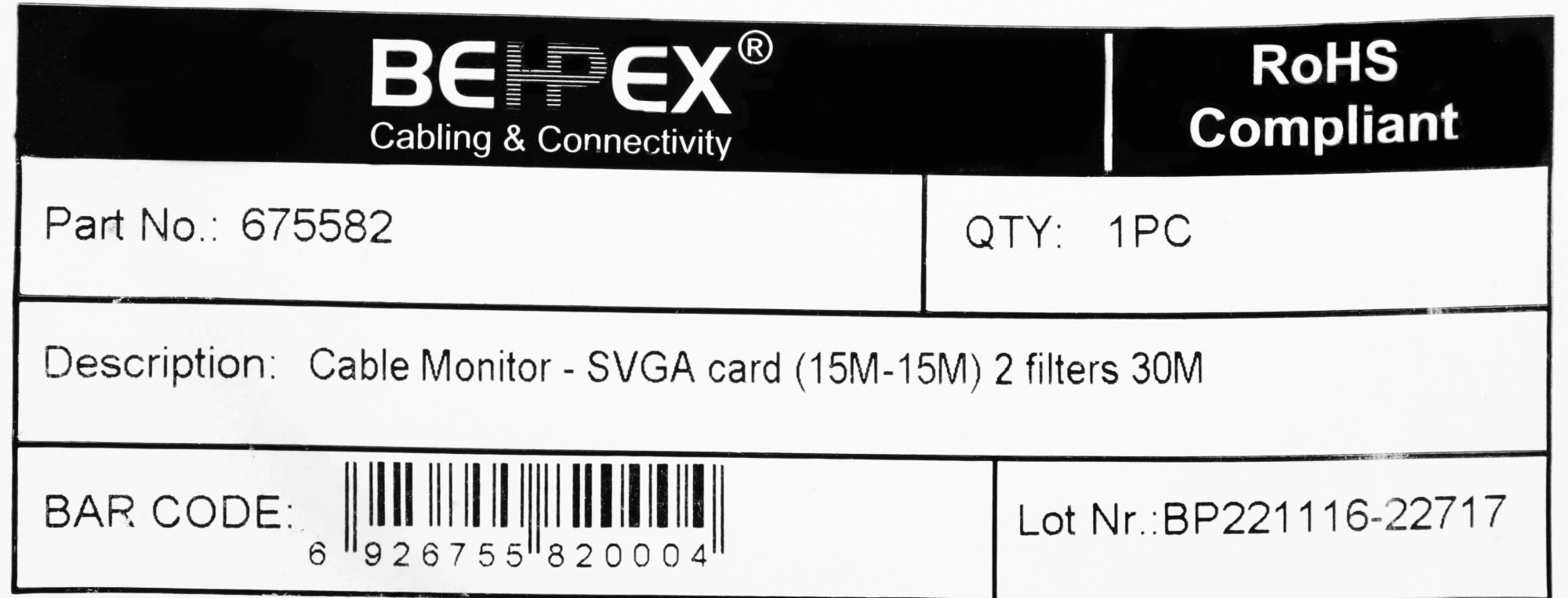 VGA кабель длиной 30 метров, дающий огромные возможности по размещению оборудования в больших помещениях. Встроенные ферритовые кольца блокируют помехи искажающие идущий по проводу сигнал, таким образом повышая его качество.