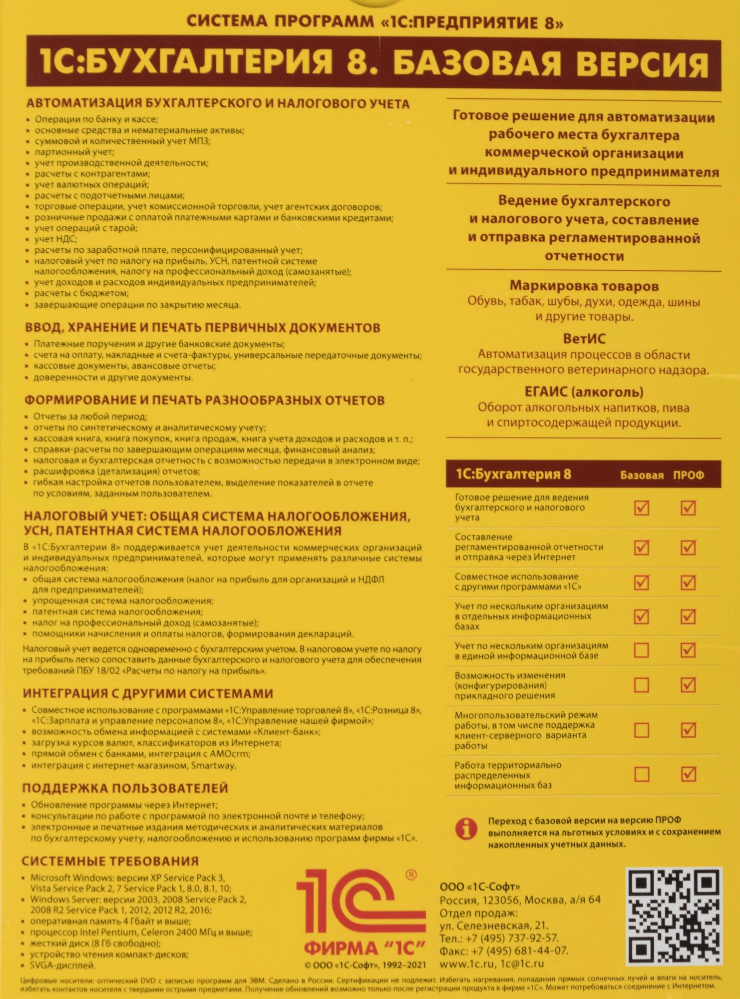 ПО 1С Бухгалтерия 8. Базовая версия (4601546041661)