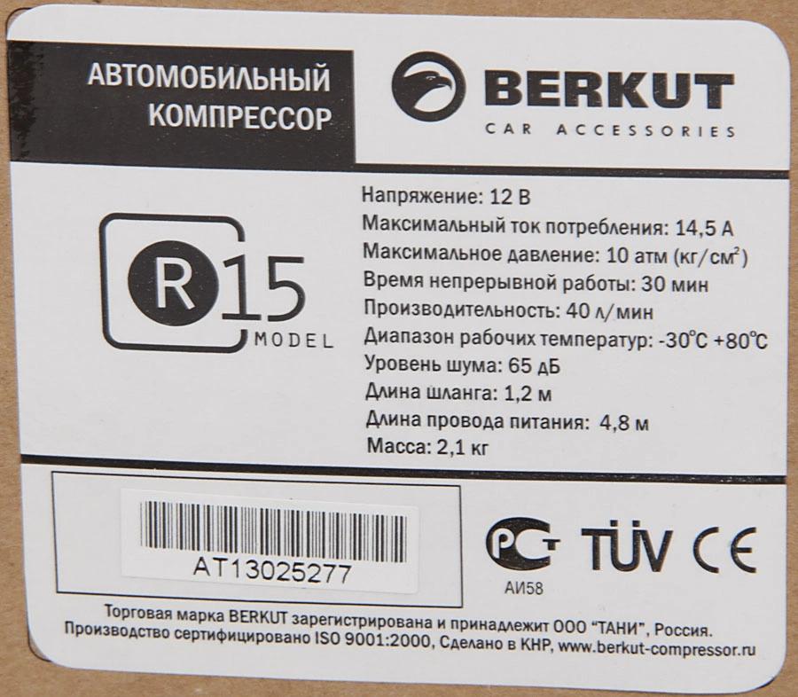 Автомобильный компрессор Berkut R15 40л/мин шланг 1.2м