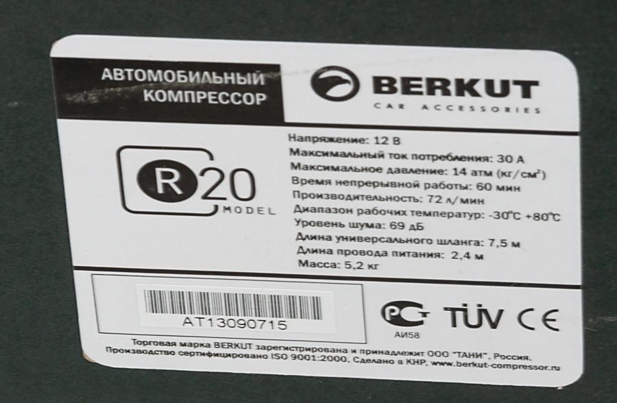 Автомобильный компрессор Berkut R20 72л/мин шланг 7.5м