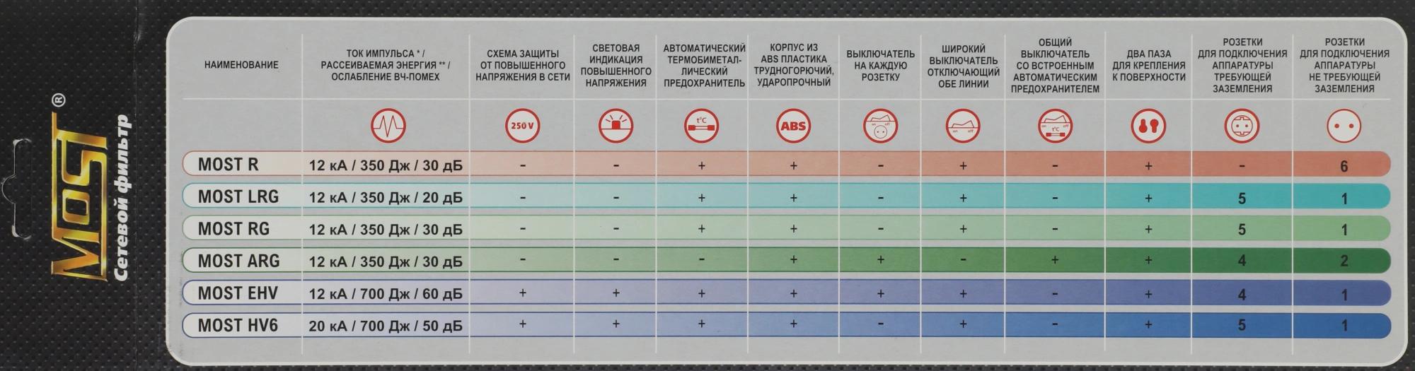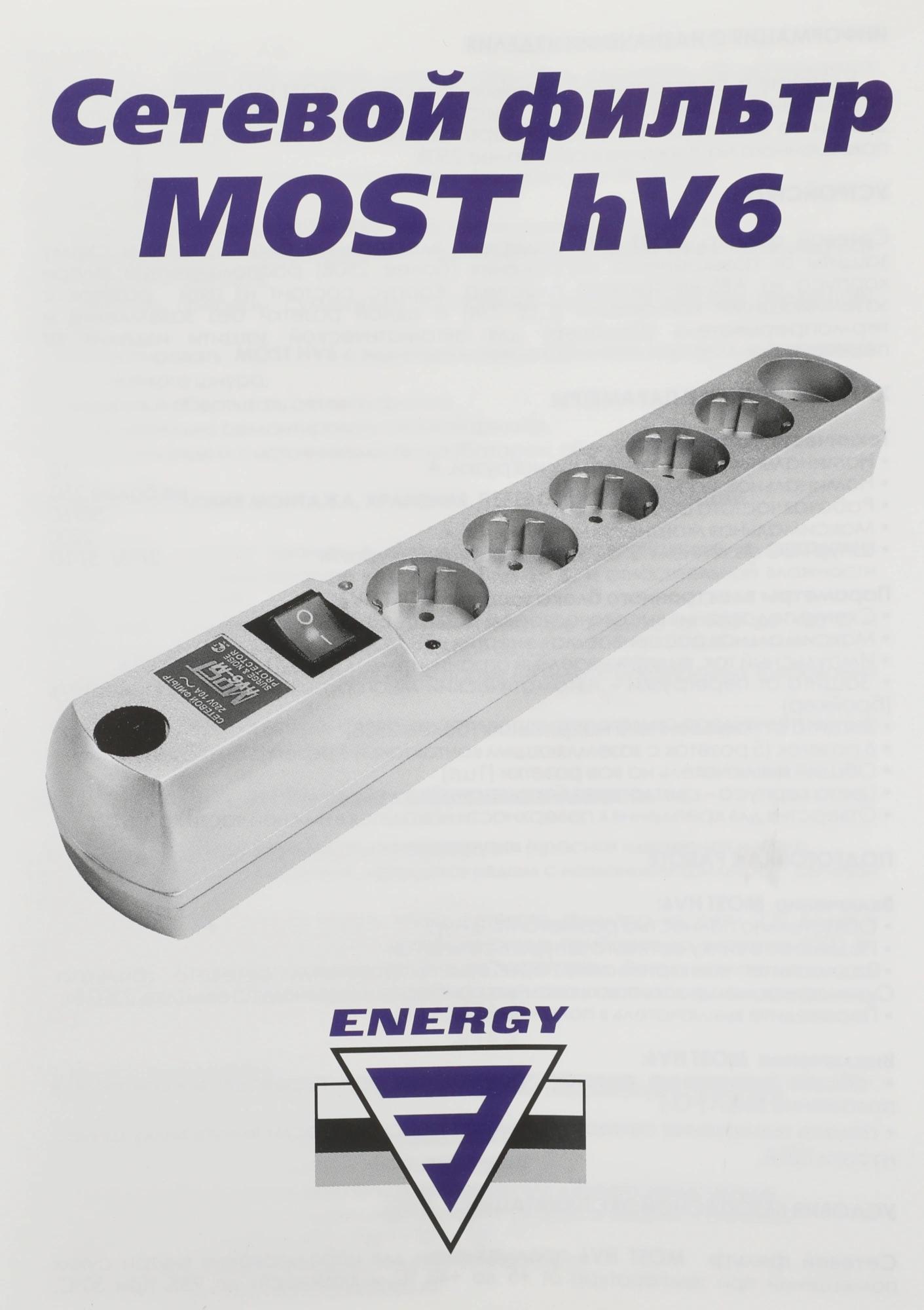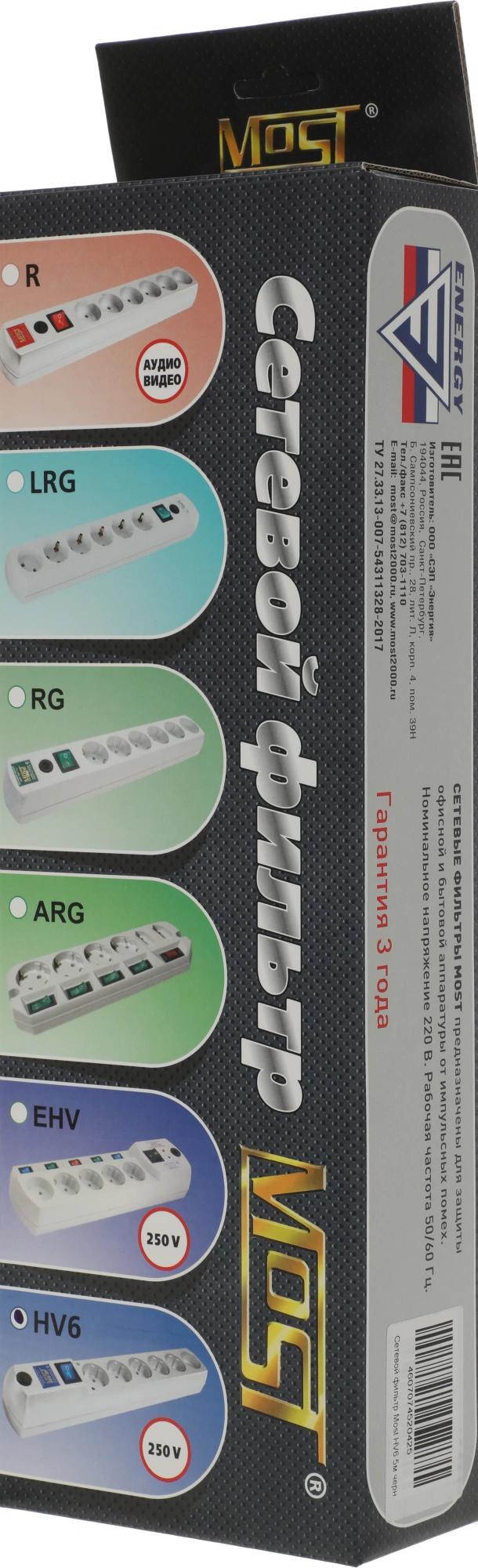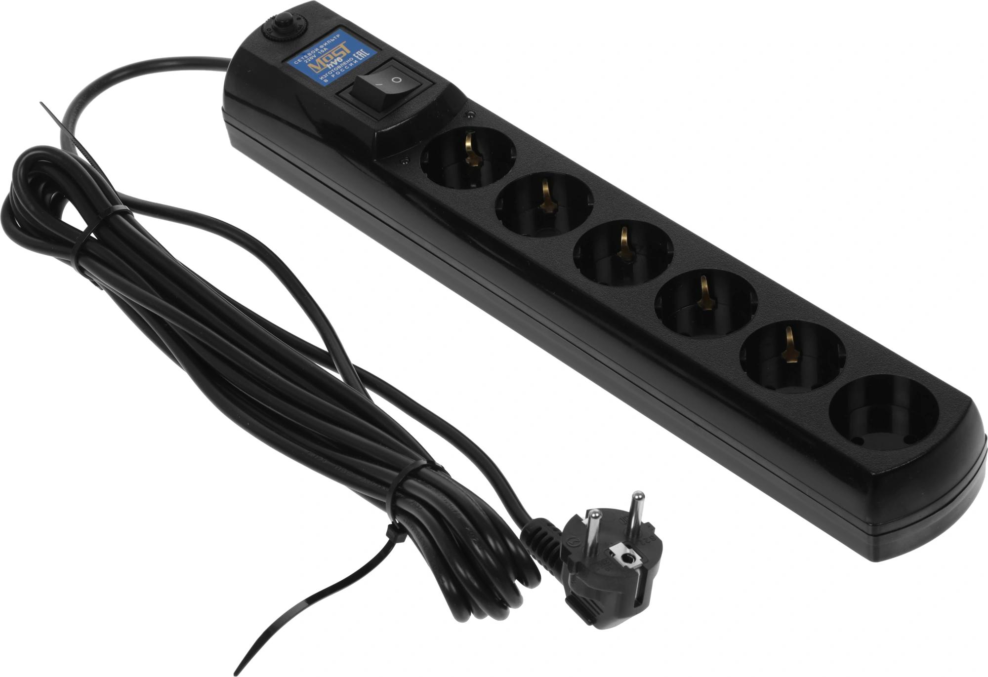 Сетевой фильтр Most HV6 5м (6 розеток) черный (коробка)