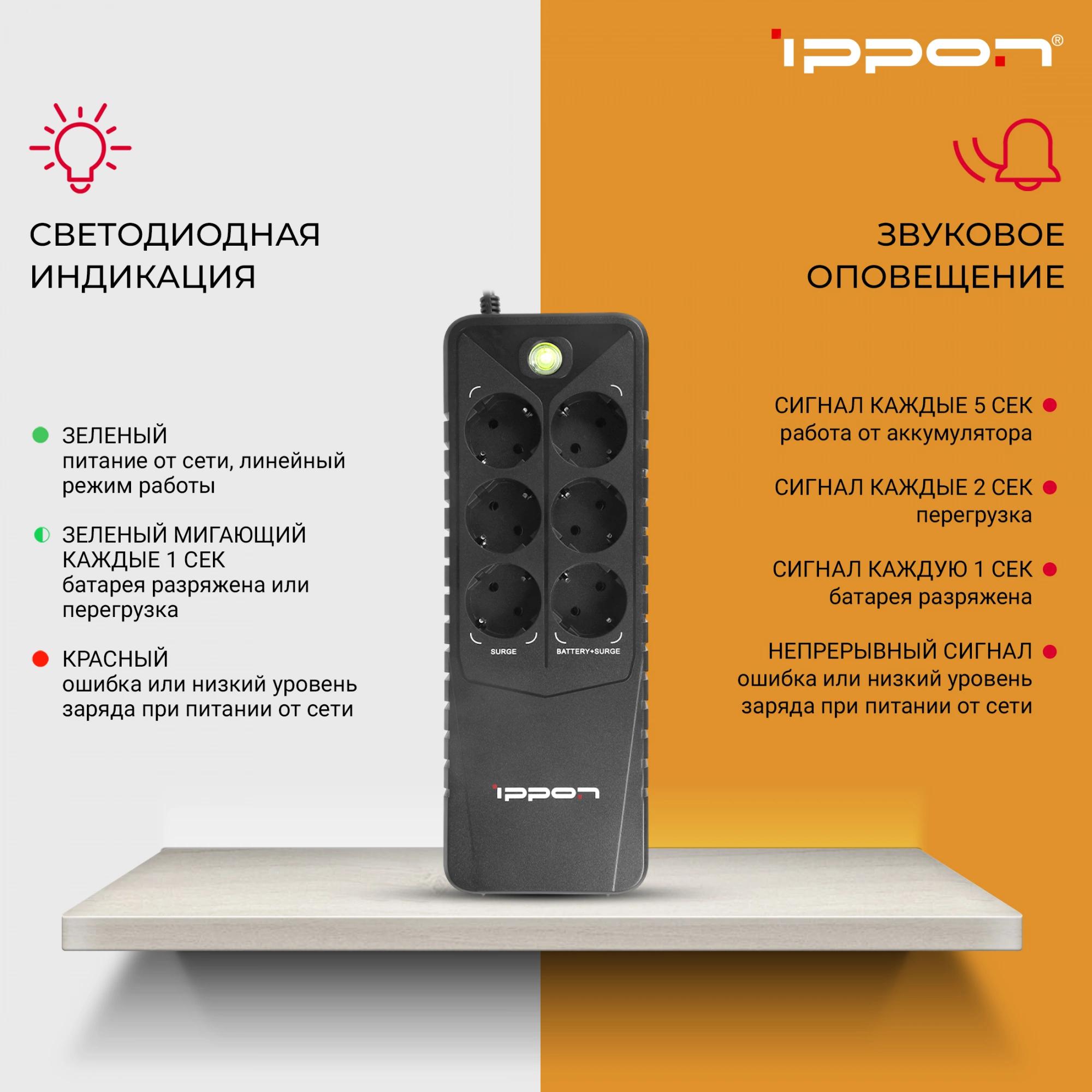 Светодиодная индикация:Синий цвет - линейный режим работы, Синий, мигающий каждые 30 с, (каждые 2 с при низком заряде батареи) - режим работы от батареи, Синий, мигающий каждые 0, 5 с, - перегрузка, Инликатор не светится синим - неисправность, Все индикаторы отключены - режим ожидания