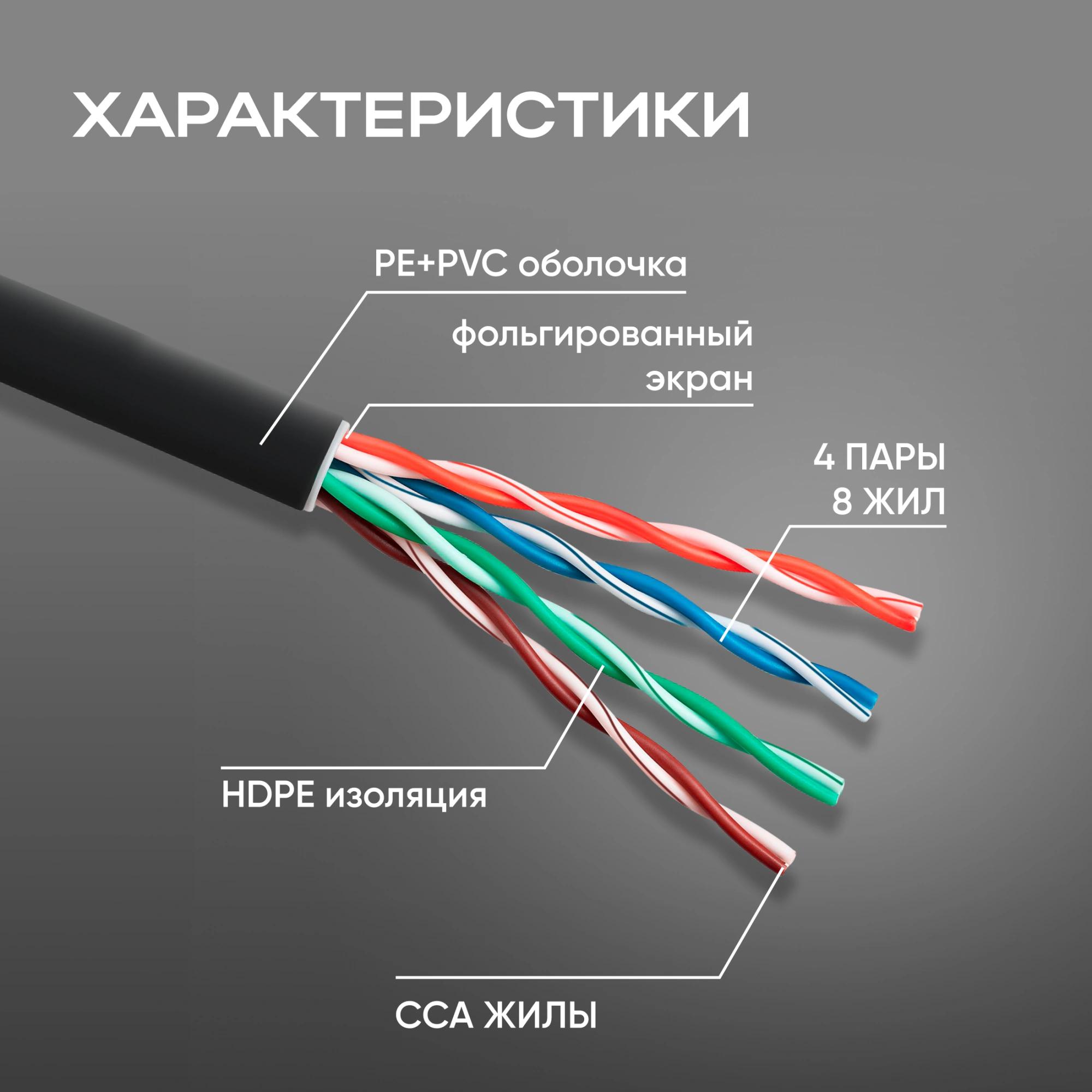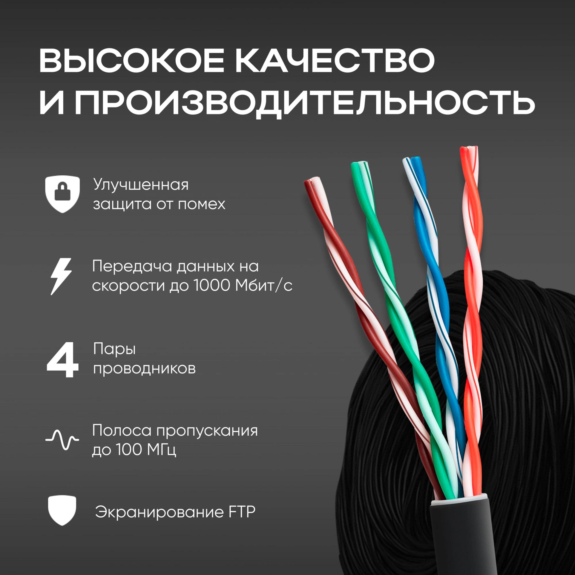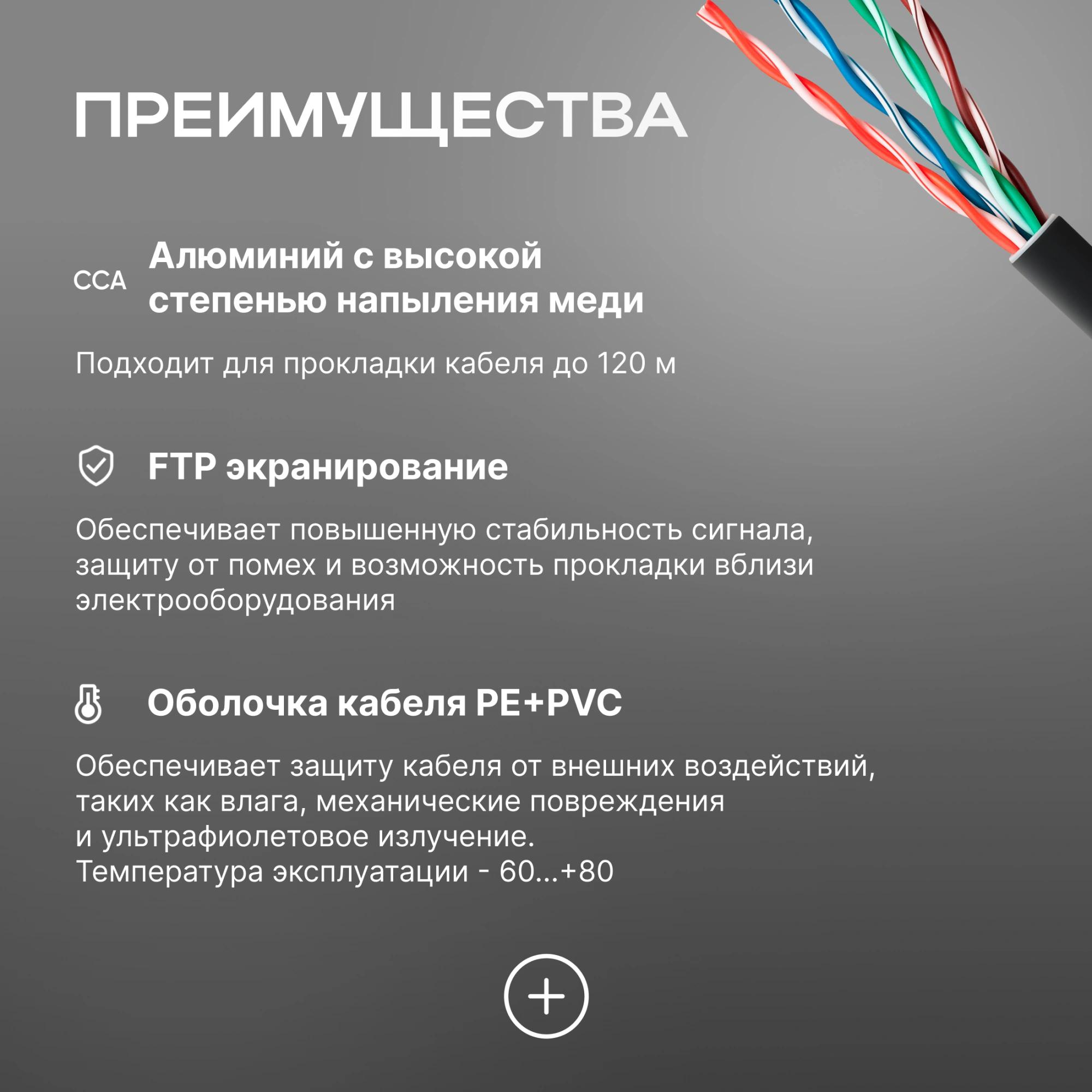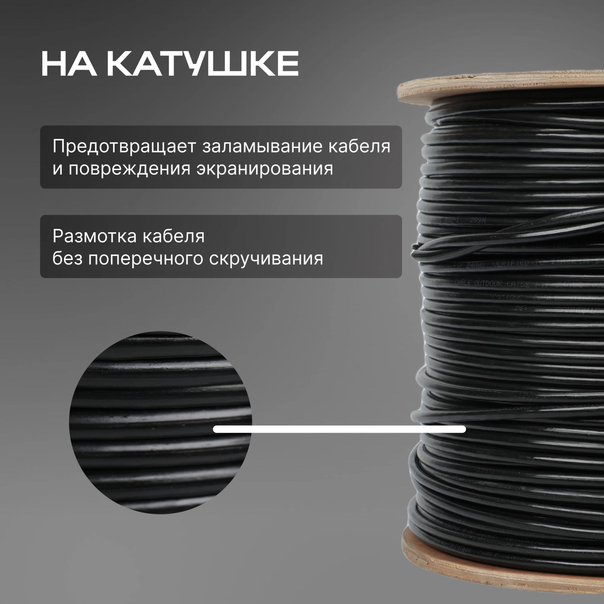 Кабель сетевой FTP 4 пары cat.5E solid 0.51мм CCA 305м черный outdoor