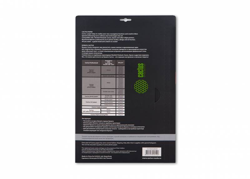 Фотобумага Cactus Prof CS-HGA326020 A3/260г/м2/20л./белый глянцевое для струйной печати