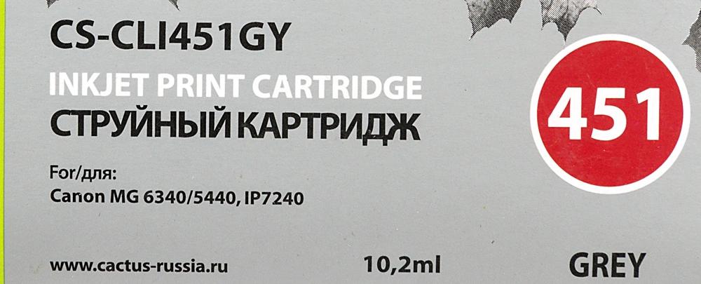 Картридж струйный Cactus CS-CLI451GY серый (12мл) для Canon MG6340/5440/IP7240 с чипом