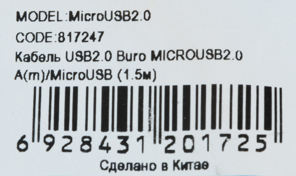 Кабель Buro MICROUSB2.0 USB (m)-micro USB (m) 1.5м черный