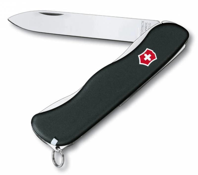 большой клинок с системой фиксации, пинцет, зубочистка, кольцо для ключей