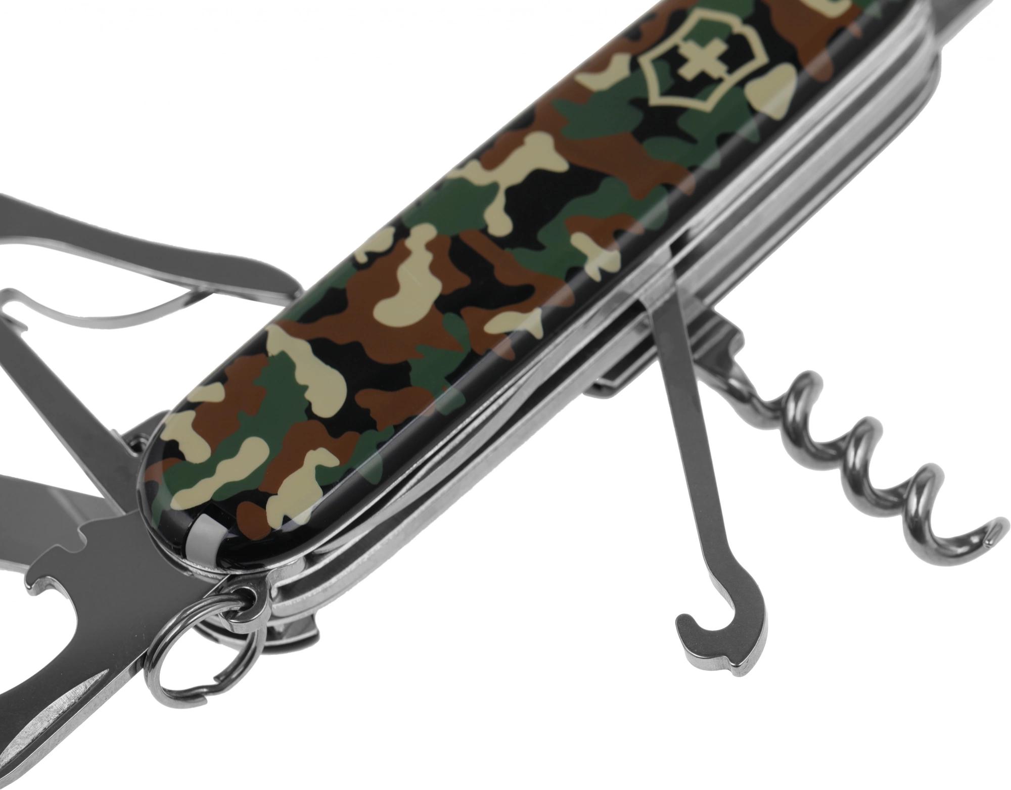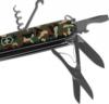 большой клинок, малый клинок, открывалка для консервных банок / плоская отвертка, открывалка для бутылок / отвертка / паз для снятия изоляции, ножницы, пила по дереву, шило / кернер, штопор, универсальный крючок, пинцет, зубочистка, кольцо для ключей