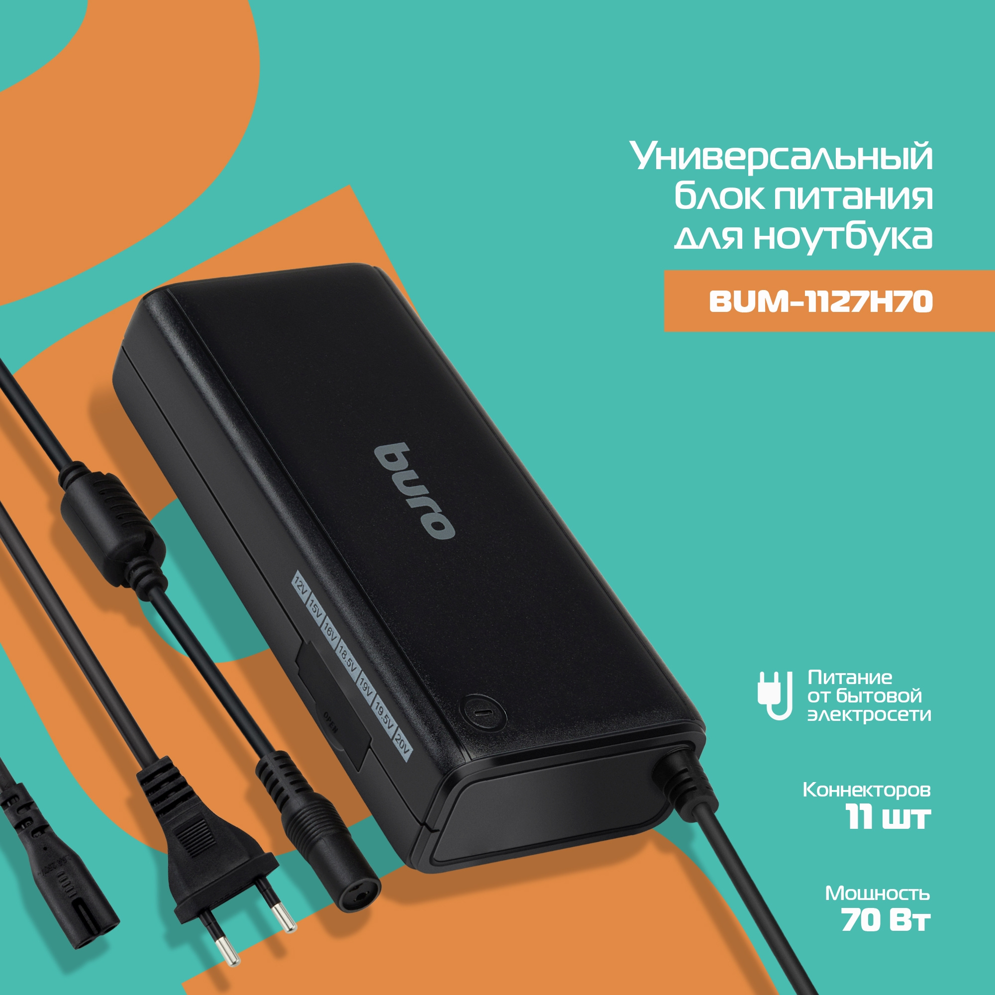 Универсальный сетевой адаптер для ноутбуков мощностью 70 ватт. В комплекте входят 11 сменных штекеров, подходящих к большинству ноутбуков. Выбор мощности для питания происходит в ручном режиме.