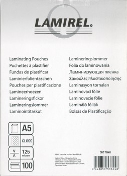 Пленка для ламинирования Fellowes 125мкм A5 (100шт) глянцевая Lamirel LA-7866101 (LA-78661)