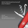 большое лезвие, малое лезвие, штопор, консервный нож с малой отверткой, открывалка с отверткой -инструментом для снятия изоляции, шило, кернер, кольцо для ключей,